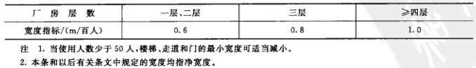 4、制藥廠廠房每層的疏散樓梯、走道、門的各自總寬度應按圖2的規(guī)定計算。當各層人數(shù)不相等時,其樓梯總寬度應分層計算,下層樓梯總寬度按其上層人數(shù)最多的一層人數(shù)計算,但樓梯最小寬度不宜小于1.1m。底層外門的總寬度應按該層或該層以上人數(shù)最多的一層人數(shù)計算,但疏散門的最小寬度不宜小于0.9m;疏散走道寬度不宜小于1.4m。