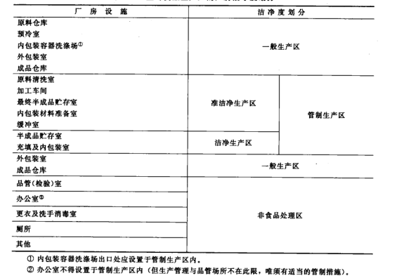 2是生鮮食品生產廠的廠房潔凈度要求劃分,供參考。
