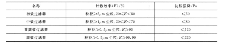空氣過濾器是制藥廠潔凈室的重要設備,性能優良的空氣過濾器應具有分離效率高、穿透率低、壓強降小和容塵量大等特點。按性能指標的高低,空氣過濾器可分為4類,如圖1所示