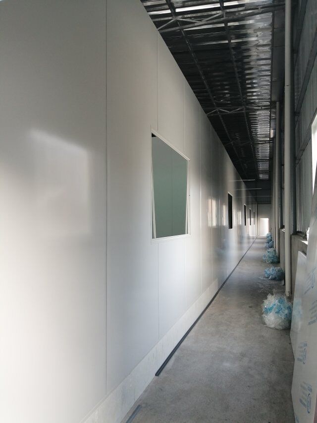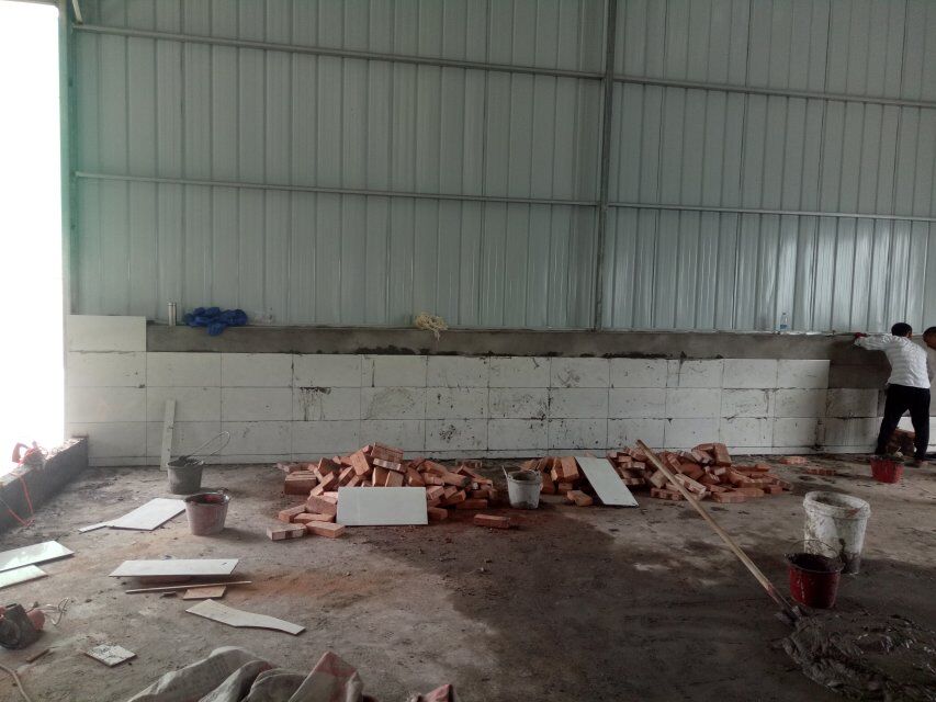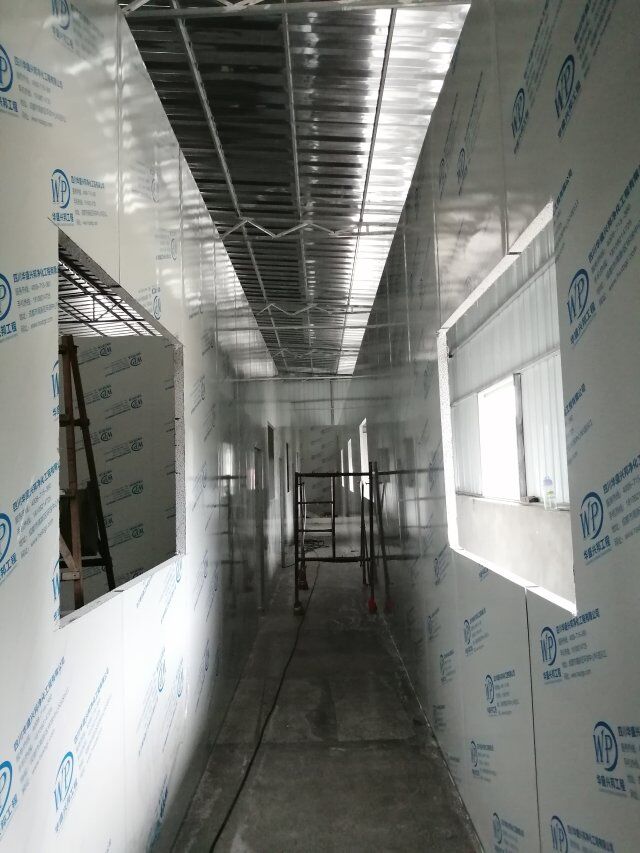 什邡昊陽(yáng)農(nóng)業(yè)發(fā)展有限公司廠房裝修現(xiàn)場(chǎng),打膠立墻板