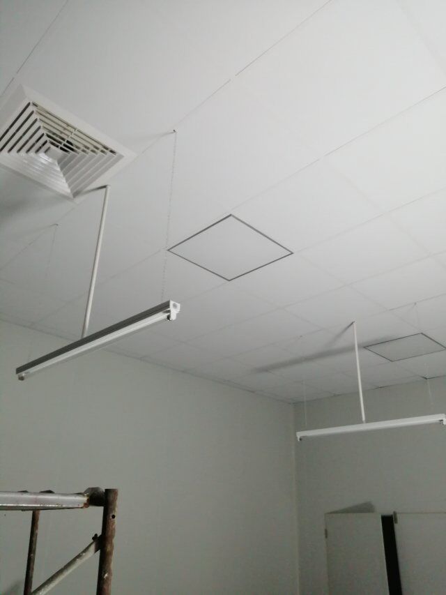 什邡昊陽(yáng)農(nóng)業(yè)發(fā)展有限公司廠房裝修現(xiàn)場(chǎng),吊頂施工中