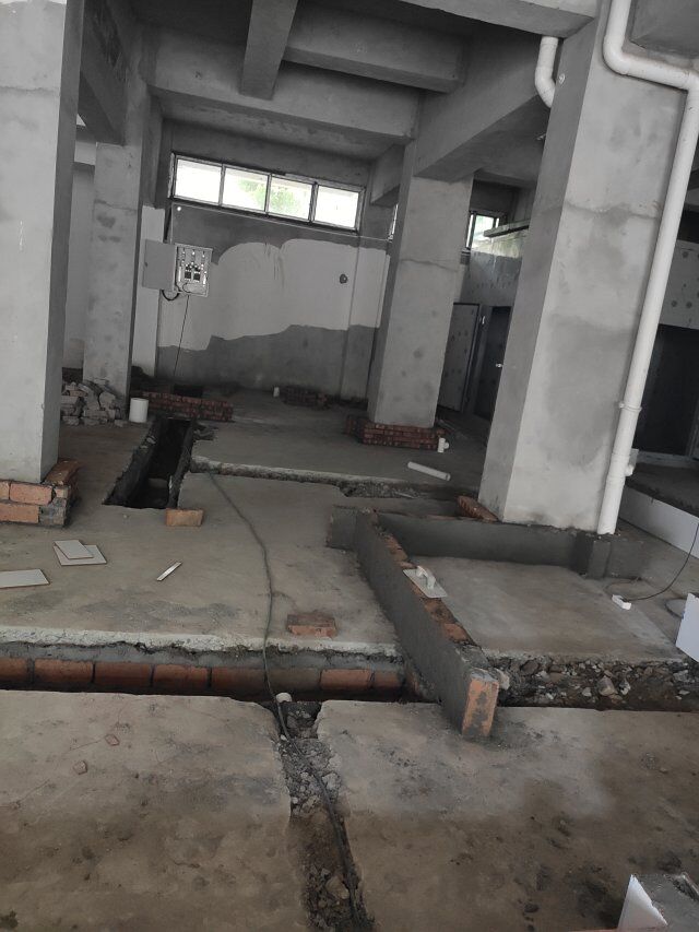 四川王臻王牛肉有限公司廠房裝修現(xiàn)場,吊頂施工,圓弧按照