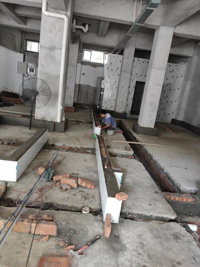 四川王臻王牛肉有限公司廠房裝修現(xiàn)場,包柱子,現(xiàn)場吊頂板