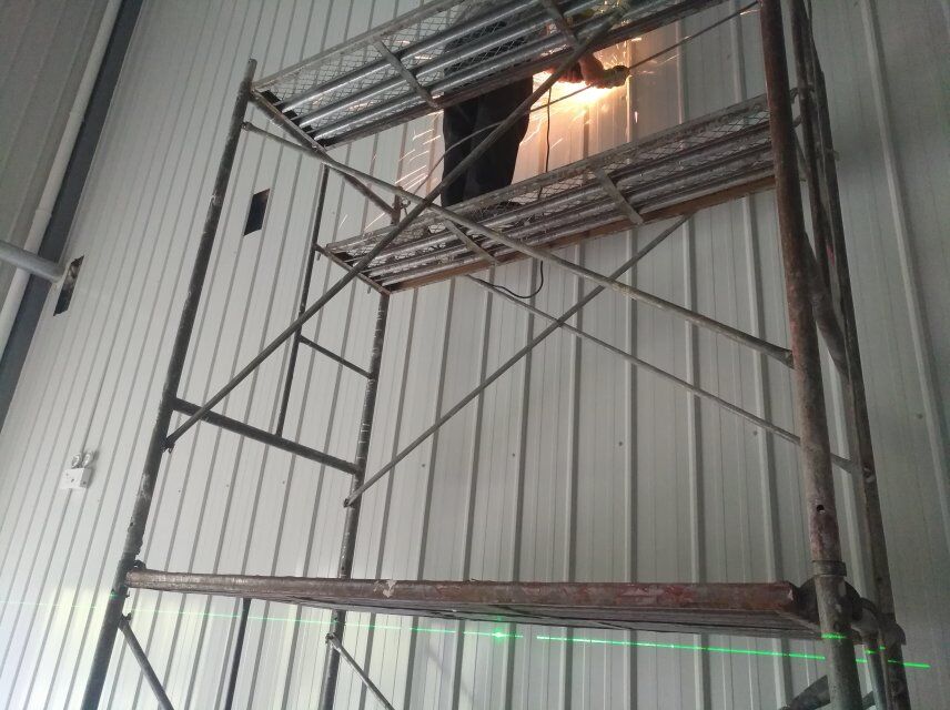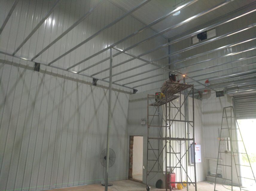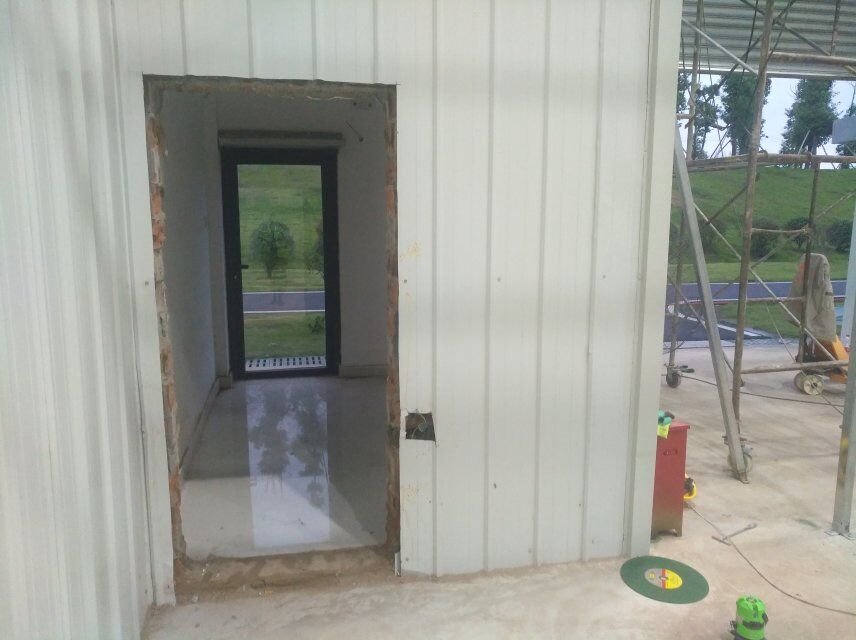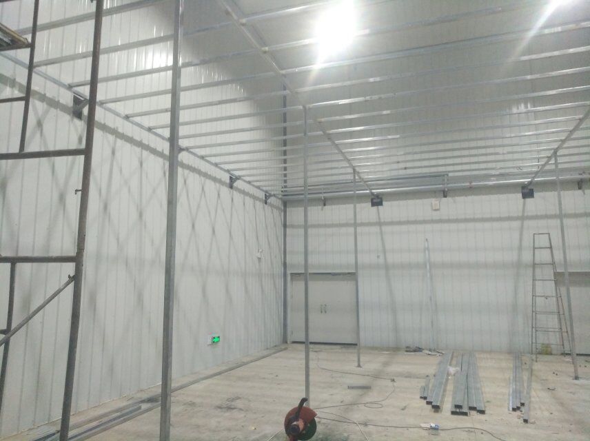 四川聚峰谷農(nóng)業(yè)科技開發(fā)有限公司廠房裝修現(xiàn)場,水電安裝,彩鋼板隔斷收尾