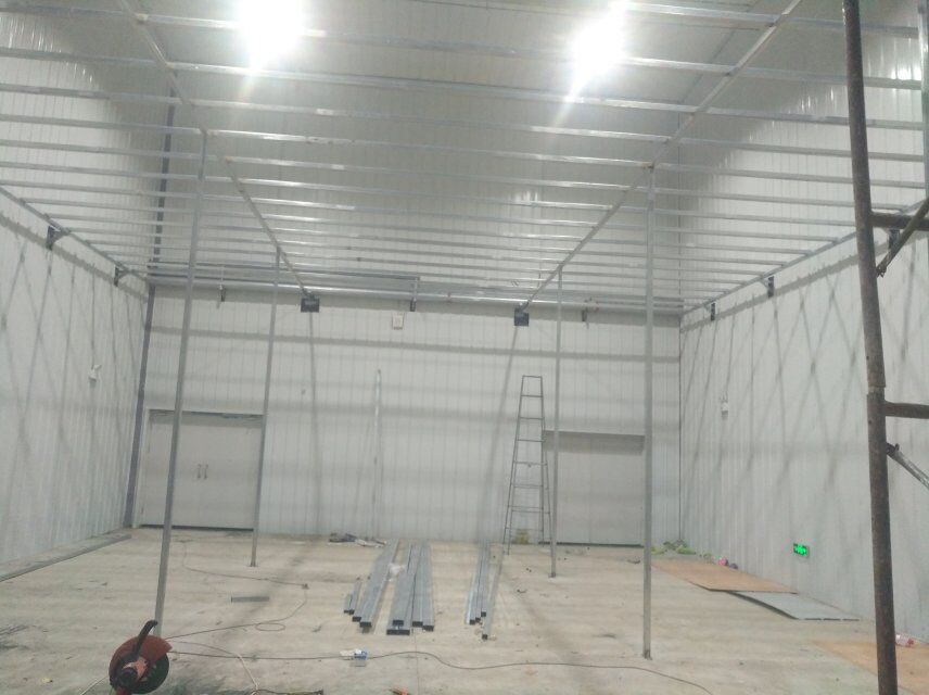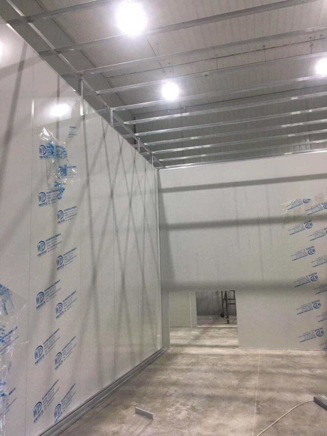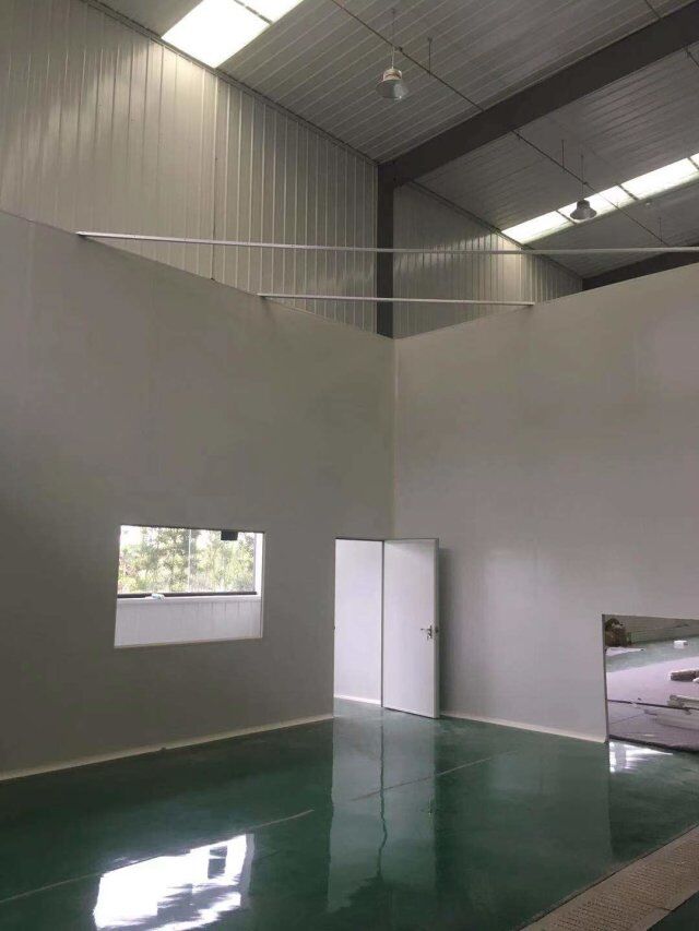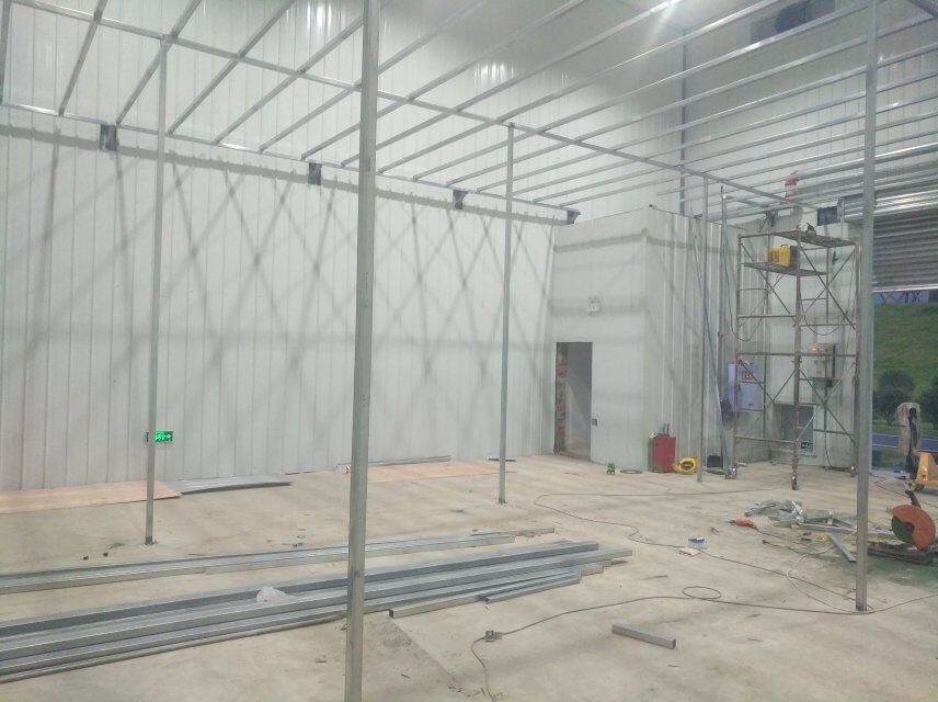 四川聚峰谷農(nóng)業(yè)科技開發(fā)有限公司廠房裝修現(xiàn)場,地坪清理,板材開始安裝中
