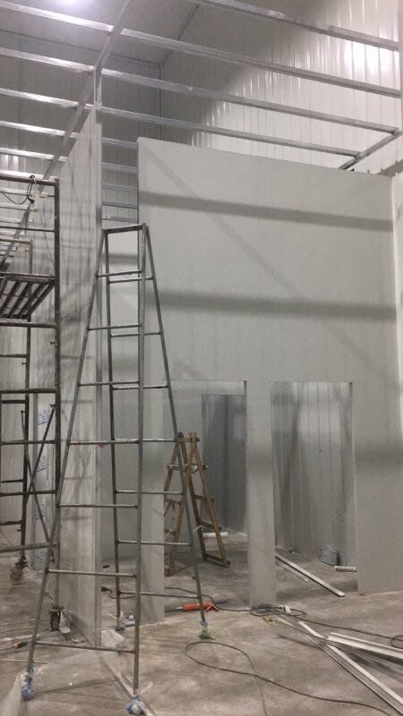 四川聚峰谷農(nóng)業(yè)科技開發(fā)有限公司廠房裝修現(xiàn)場,隔斷立墻板