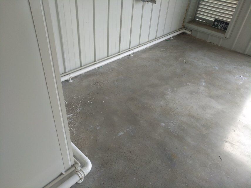 金堂聚豐谷橄欖油廠房裝修現(xiàn)場,固化地坪施工,管道連接施工