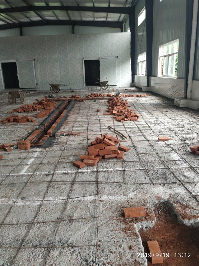 四川鄉(xiāng)巴佬農(nóng)牧集團(tuán)有限公司廠房施工現(xiàn)場,擋水墻貼磚完成,板材到現(xiàn)場,板材搬運(yùn)