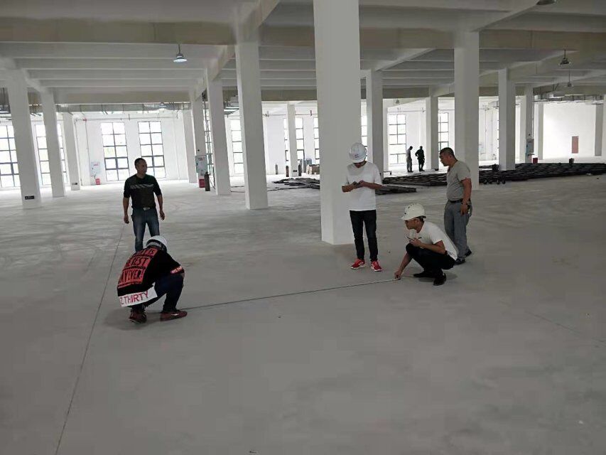 四川楊陳鮮米線食品有限公司廠房裝修現(xiàn)場,現(xiàn)場測量放線中