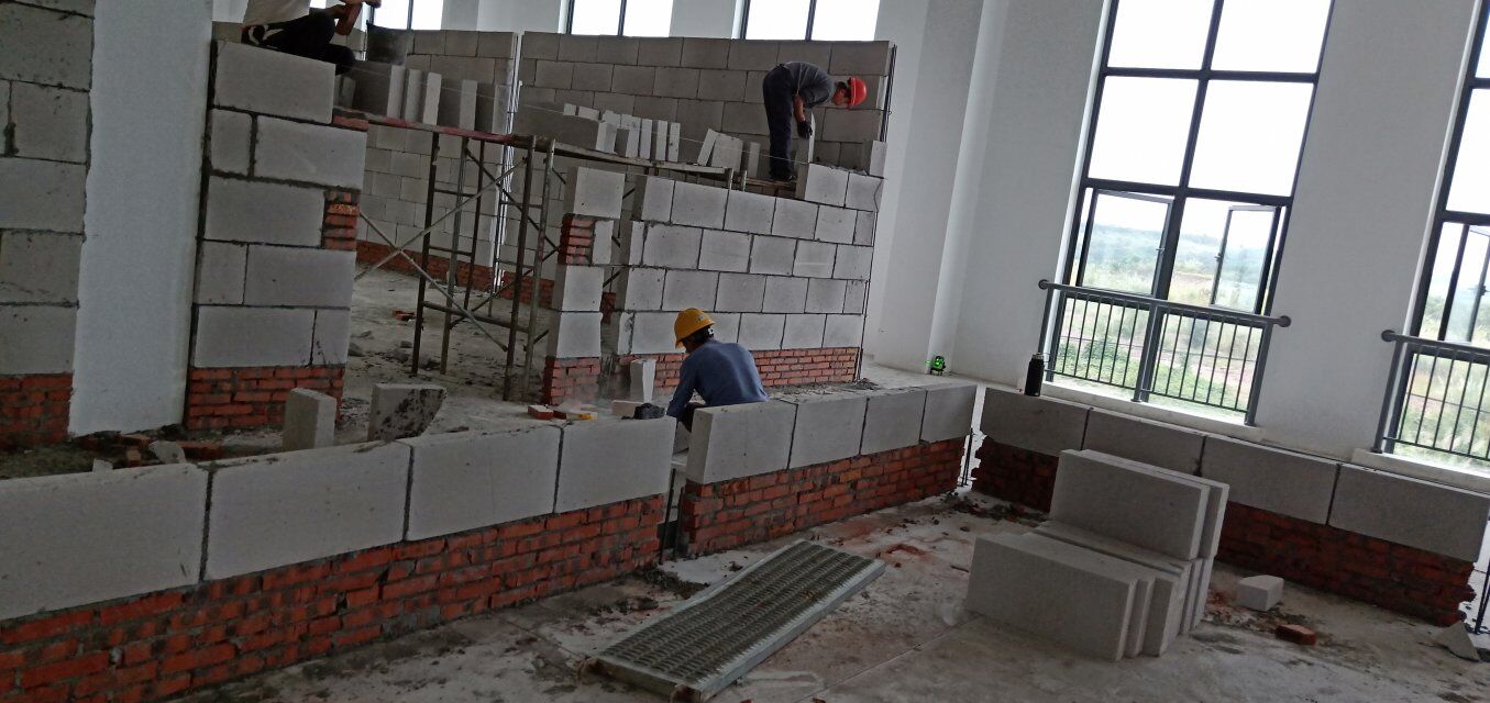 四川楊陳鮮米線食品有限公司廠房施工現(xiàn)場,擋水墻施工