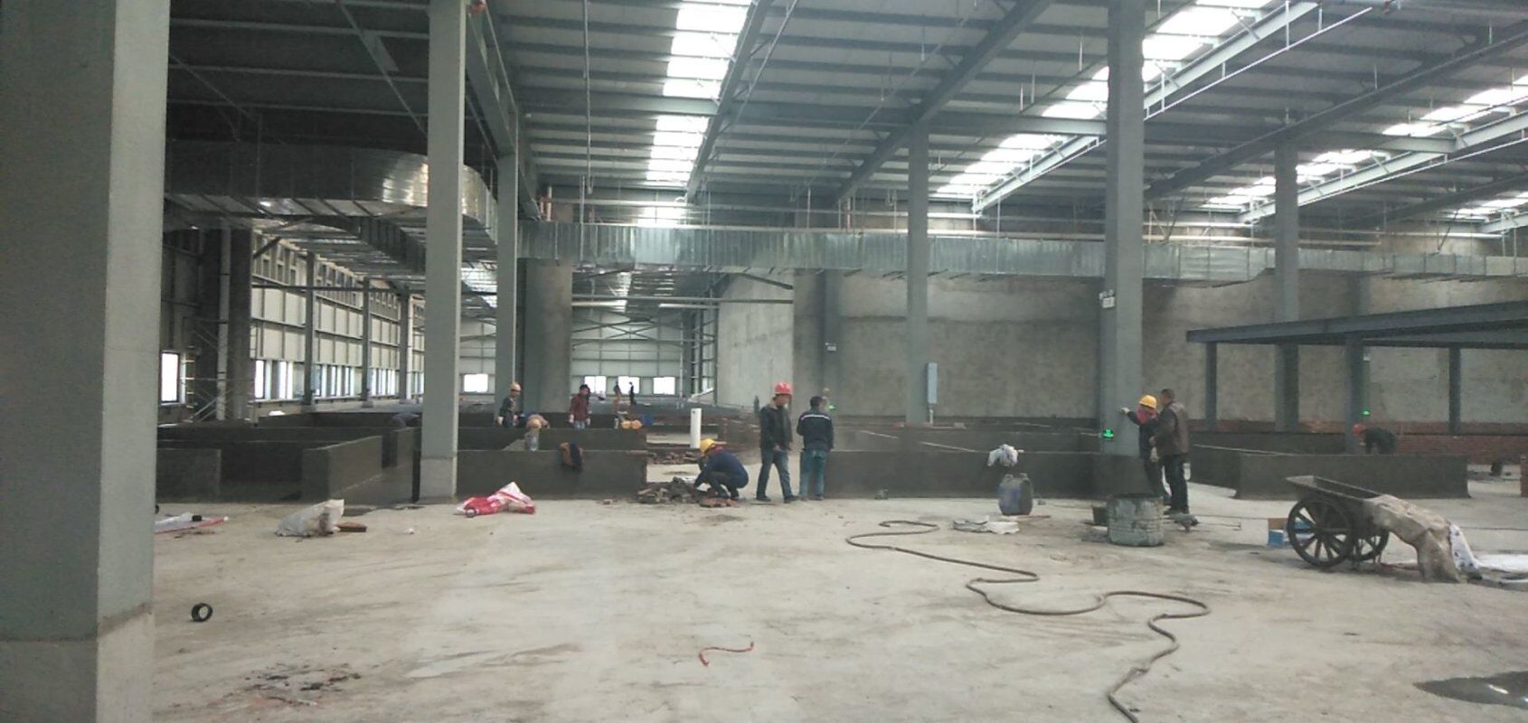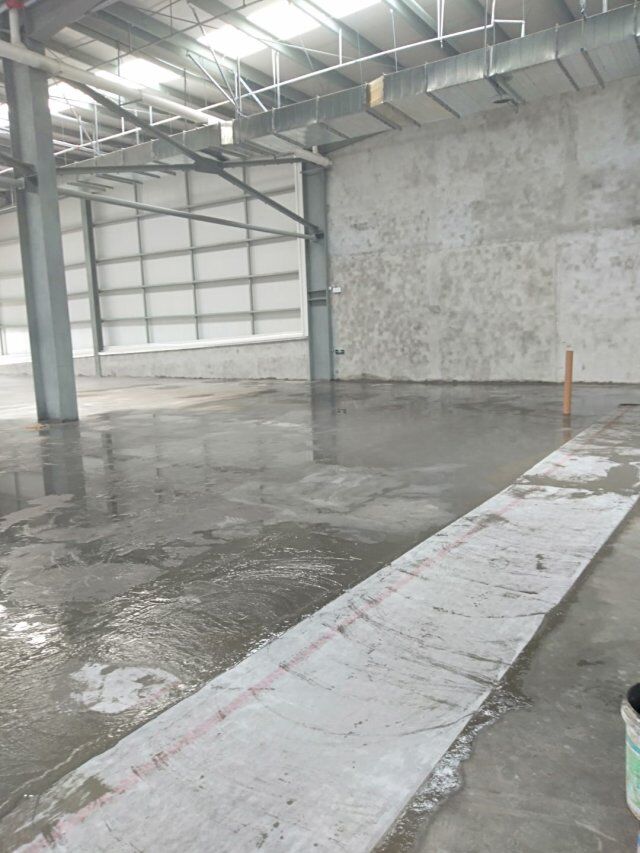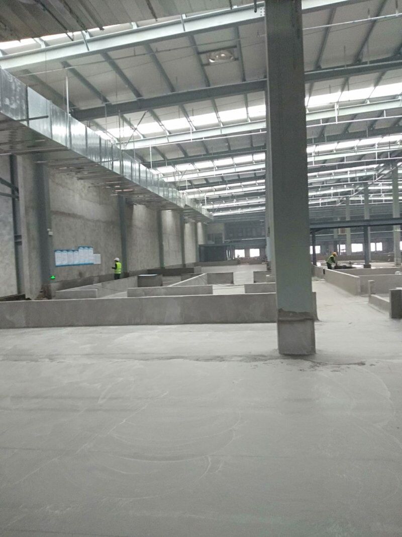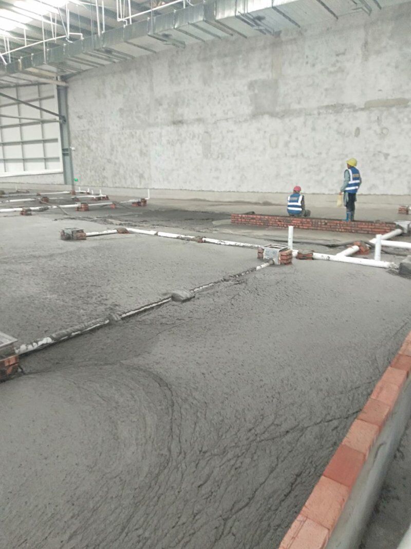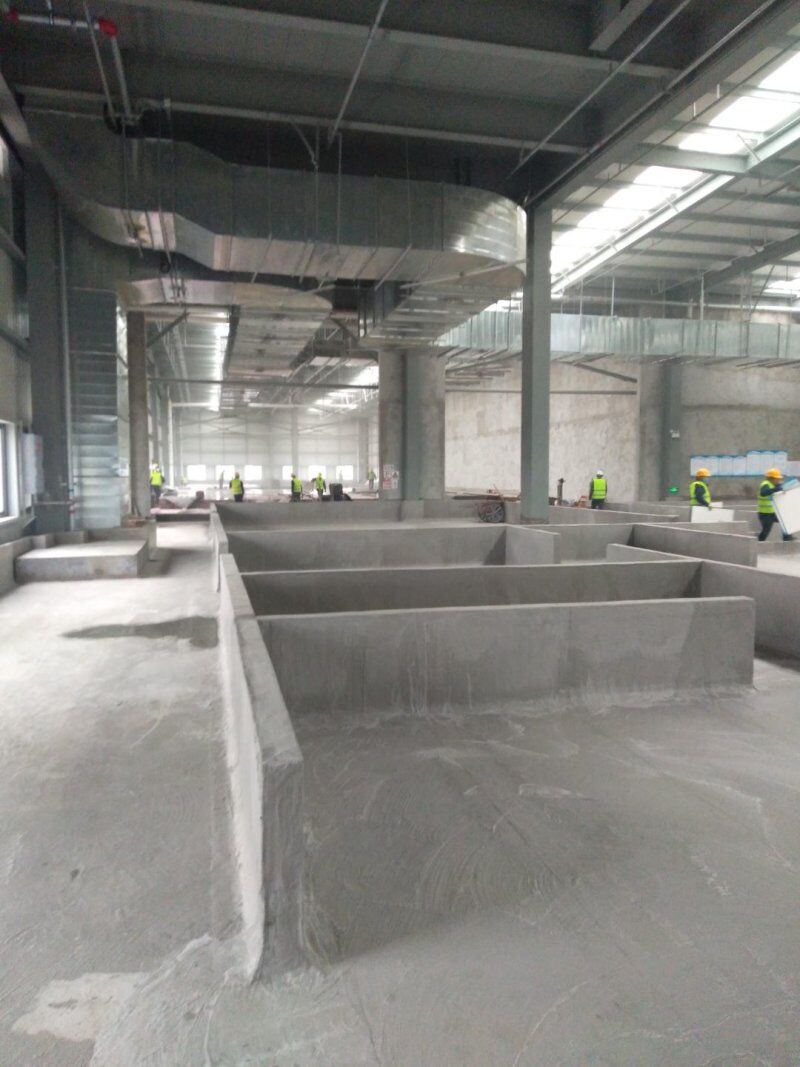 四川吉百興食品有限公司中央廚房施工現場,地坪灑水,放線