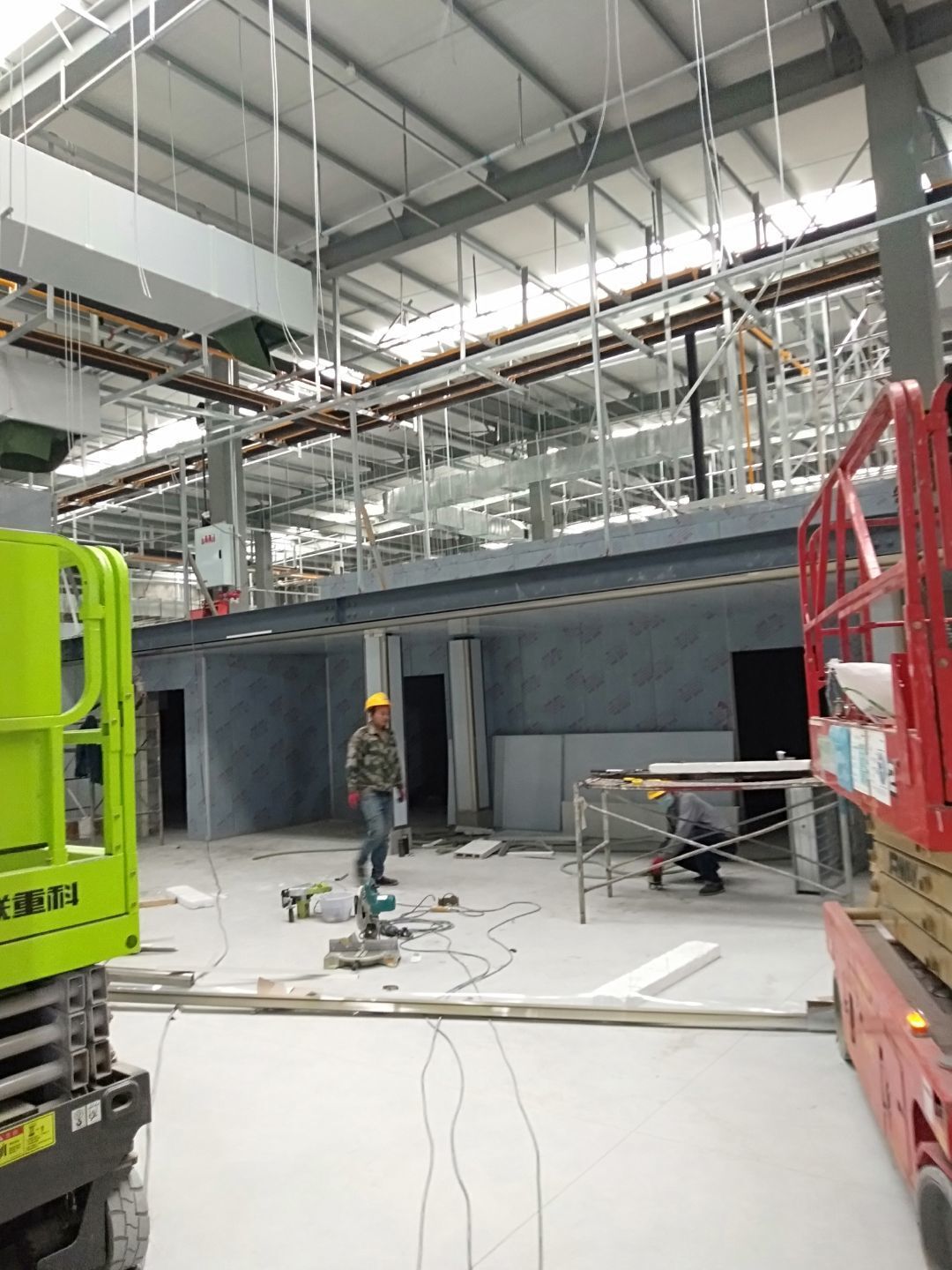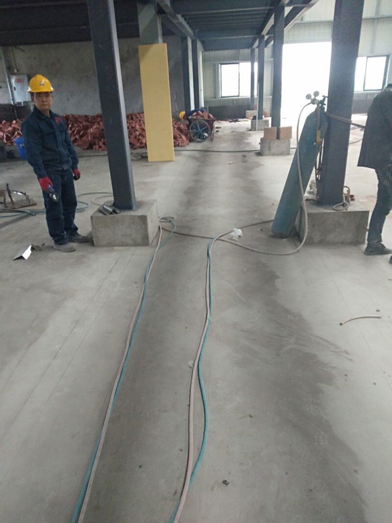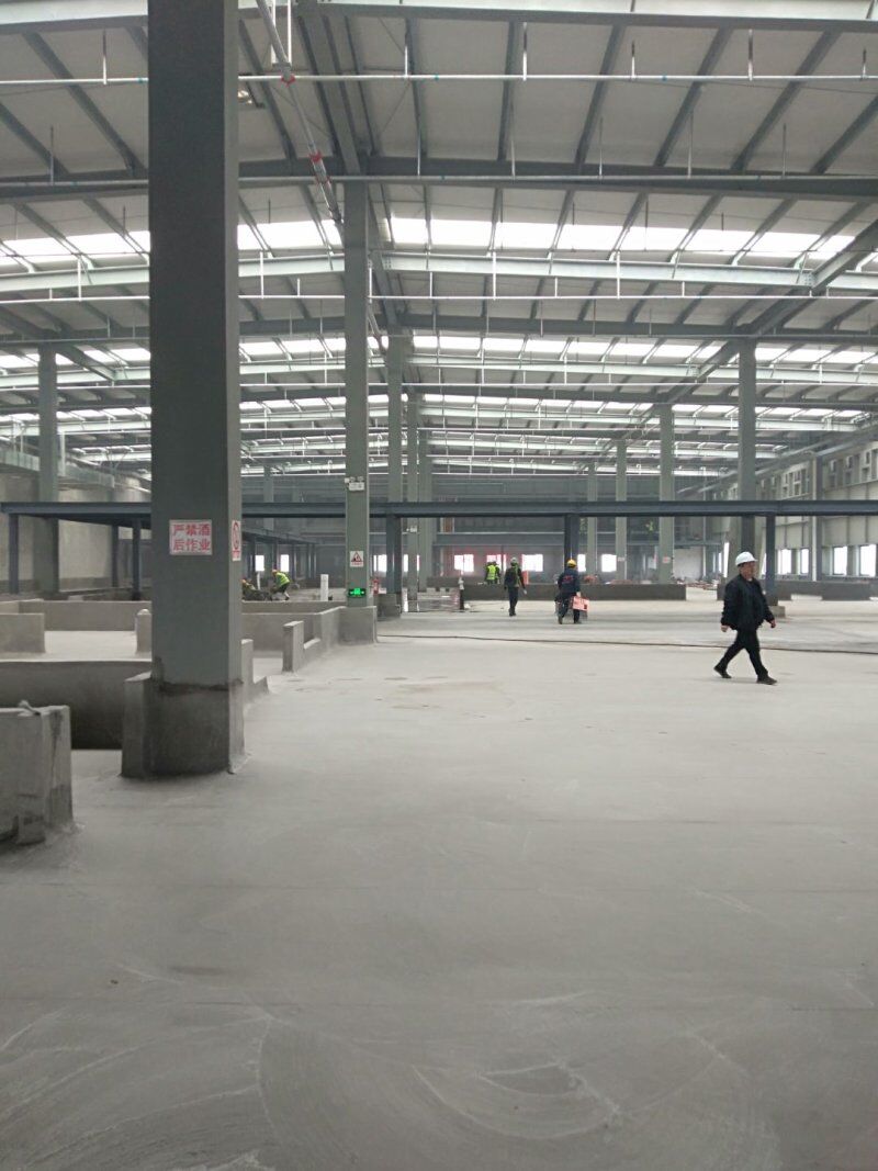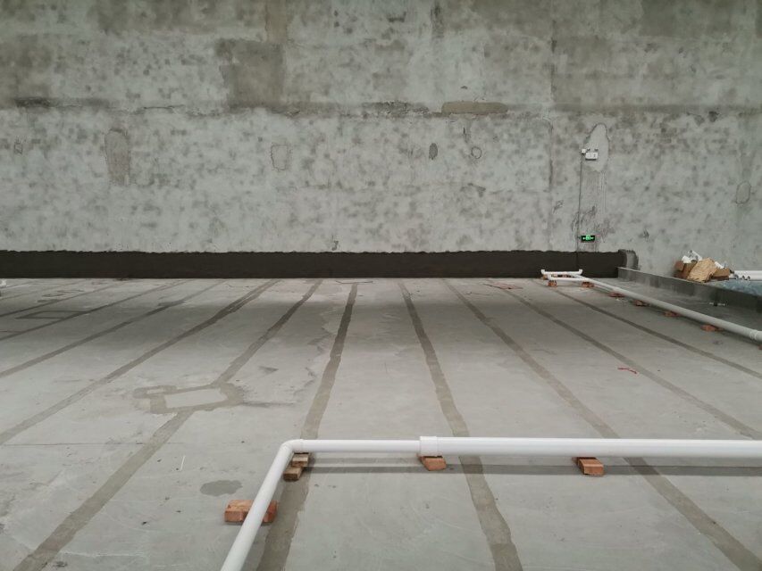 四川吉百興食品有限公司中央廚房施工現場,地坪灑水,放線