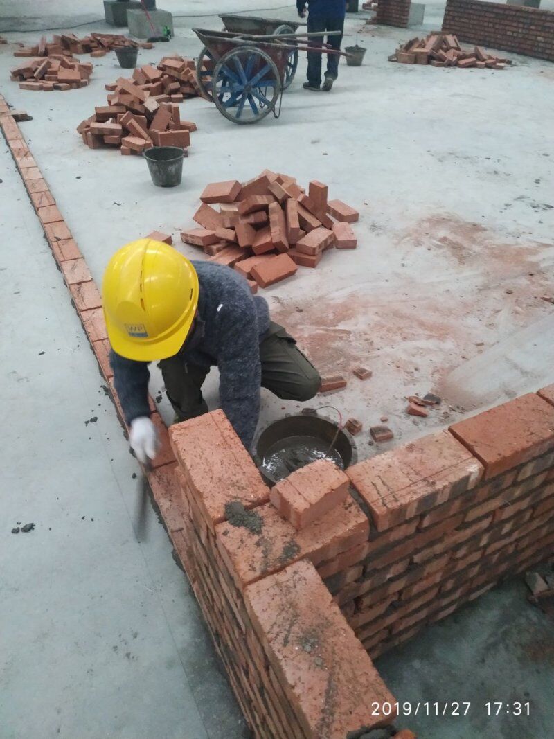 車間擋水墻砌磚