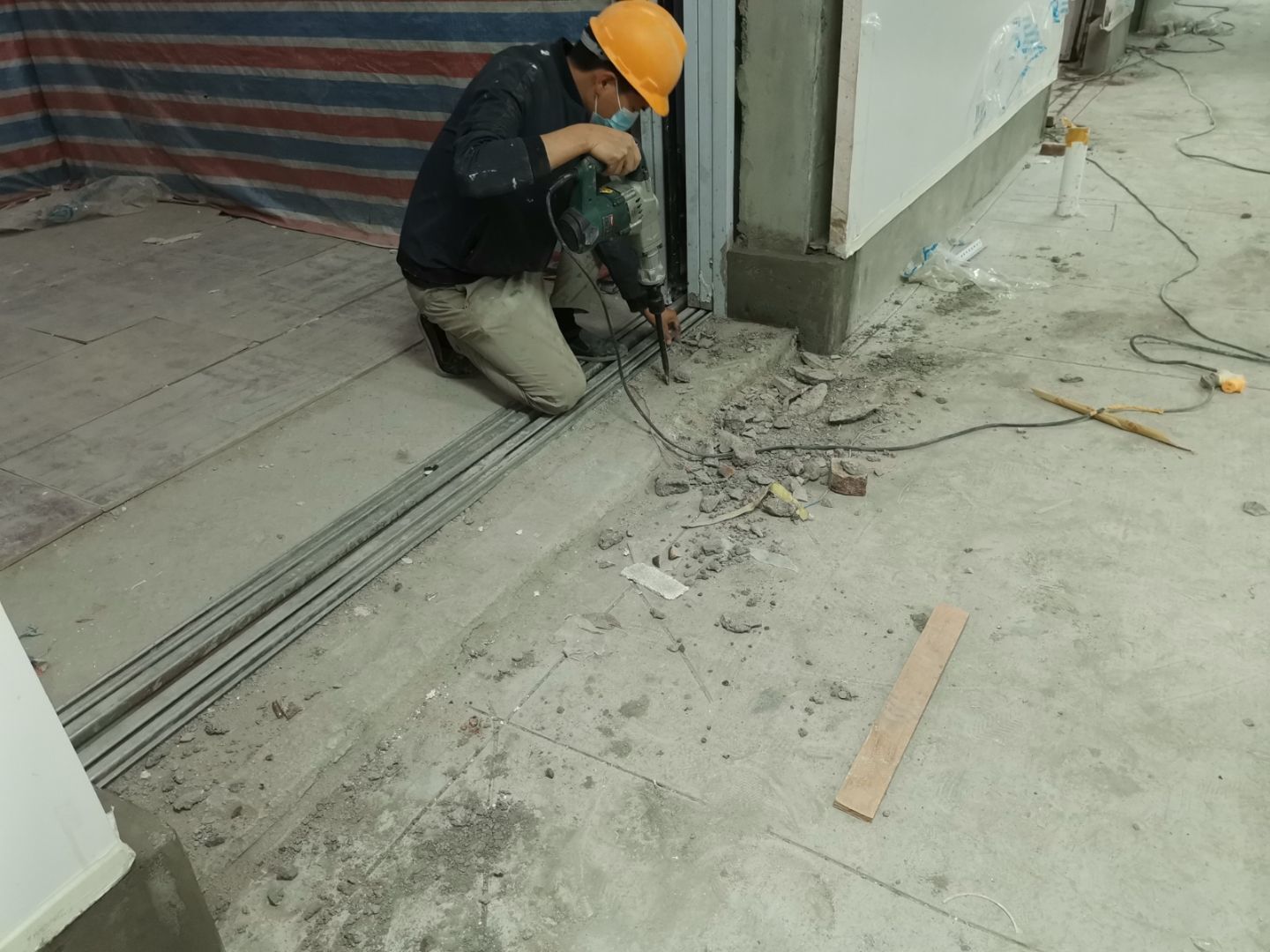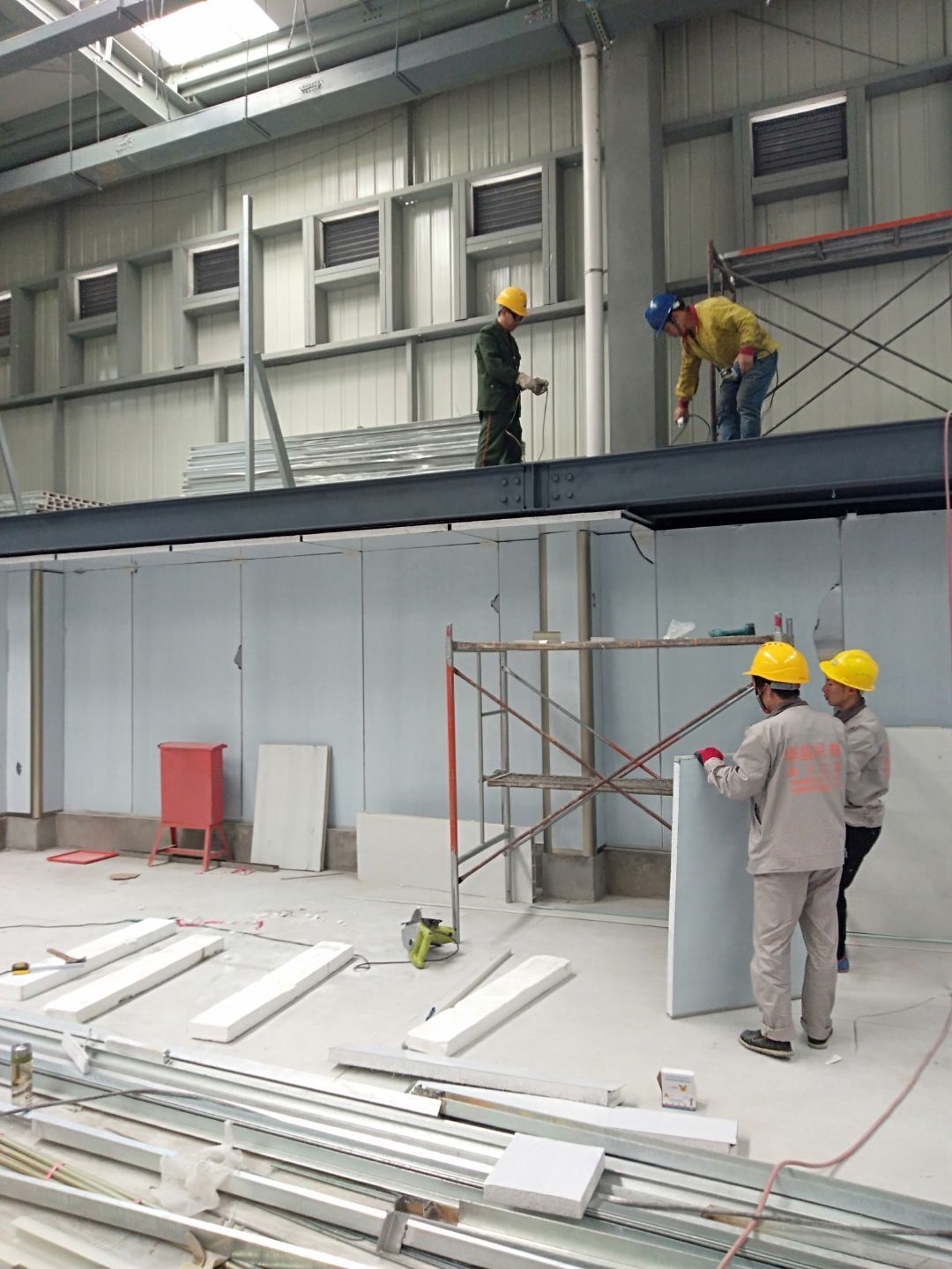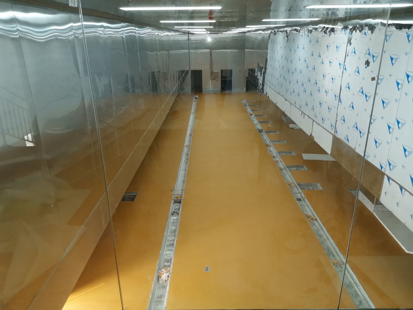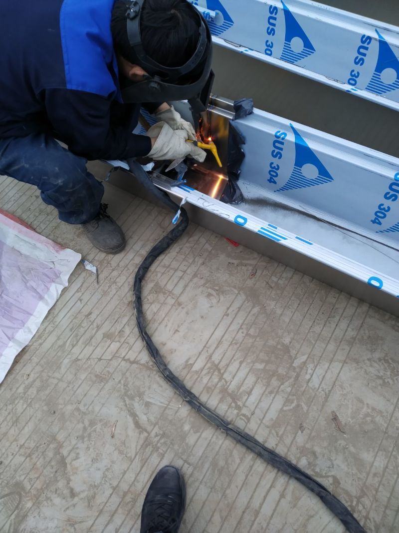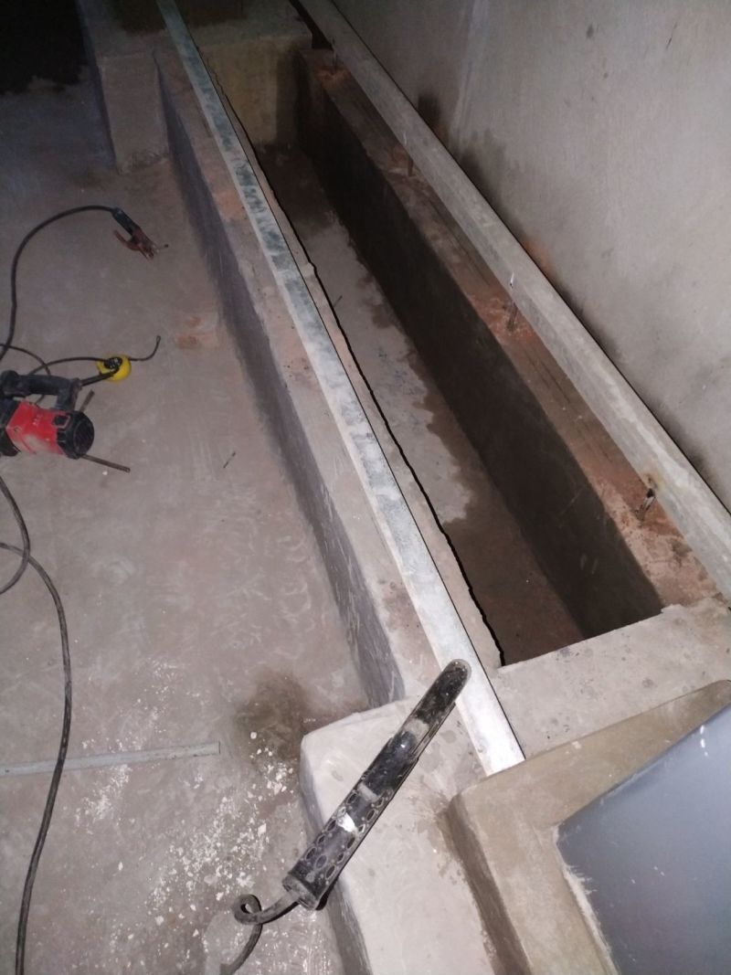 1.一樓排水溝清理完成; 2.辦公室砌磚抹灰完成,防水施工完成; 3.一樓夾層衛生間建渣清理; 4.電梯井前伸縮帶護邊角鋼預制焊接安裝; 5.主通道開始閉水實驗; 6.電梯井前建渣平整完成。 7.一樓不銹鋼排水溝焊接。