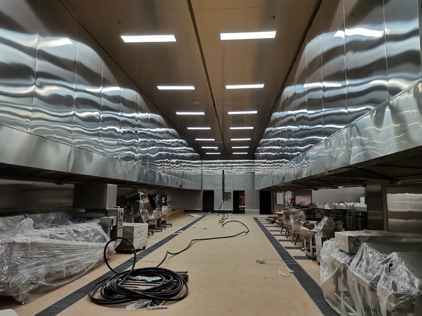 四川吉百興食品有限公司中央廚房裝修接近尾聲,現場開始收拾細節,搞衛生