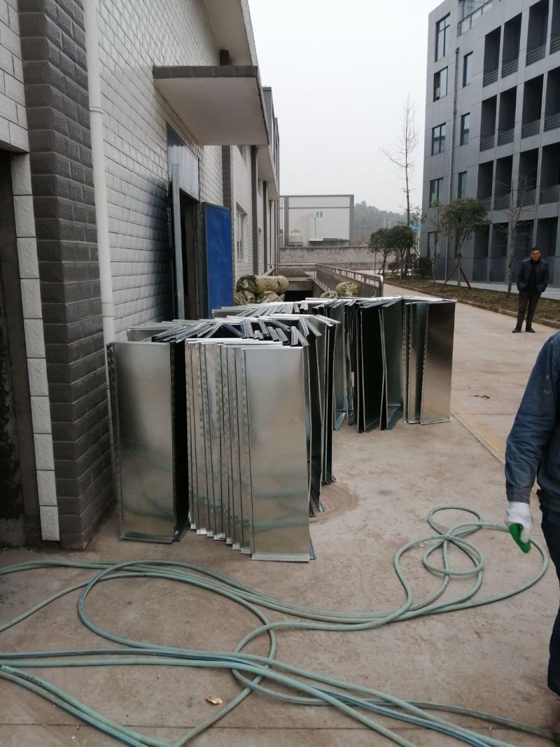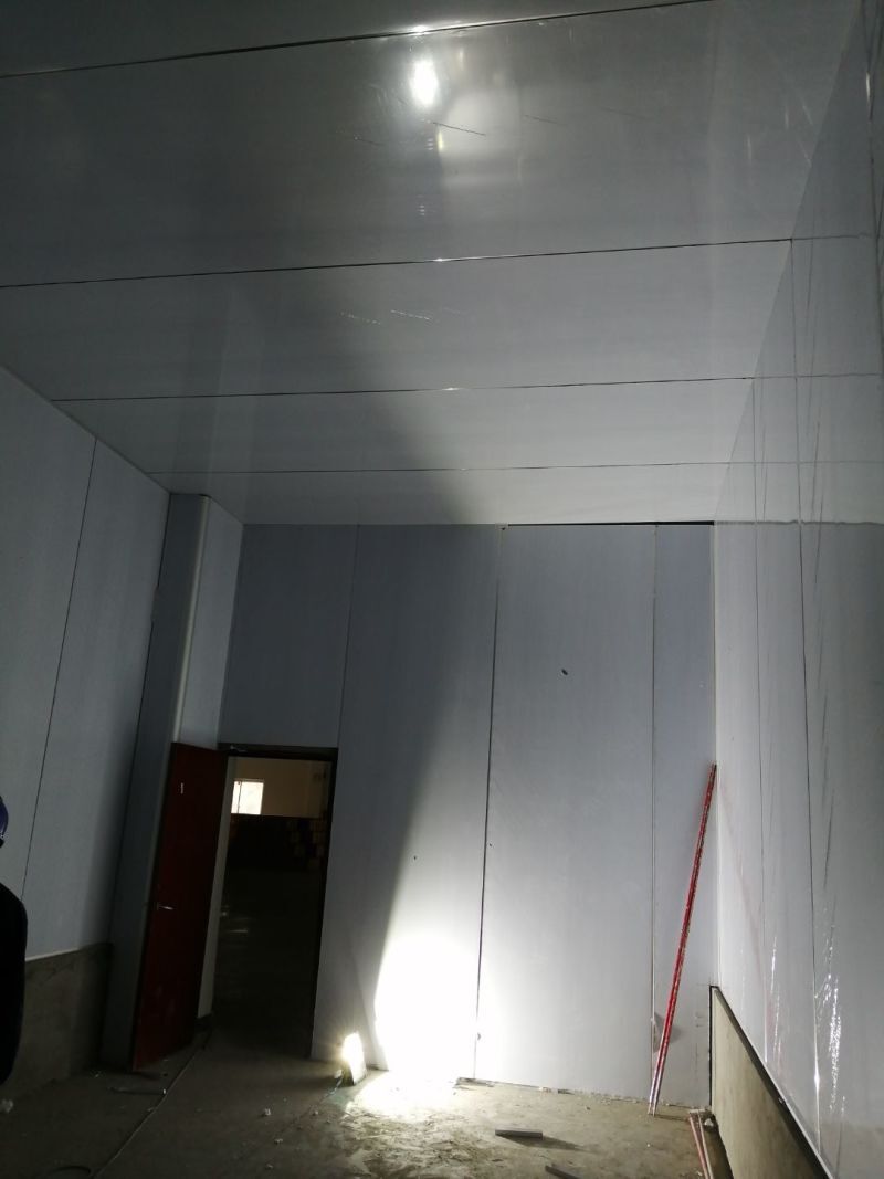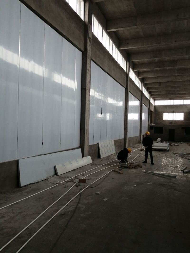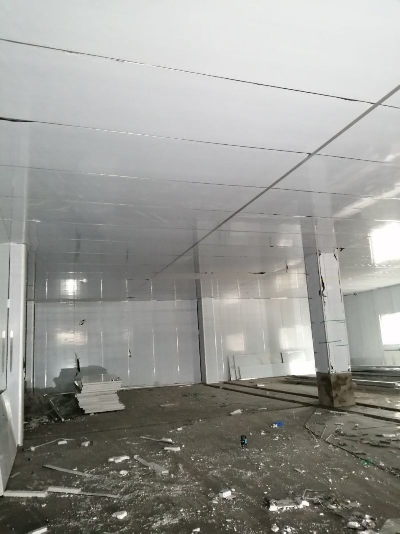 1.風管組裝完成,保溫完成百分之五十 2.彩鋼板開始全面吊頂