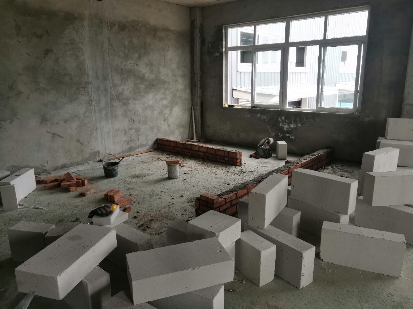 1,一樓加氣塊砌筑完成40%, 2,二樓臨時增加實體墻抹灰完成90%, 3,材料轉運二樓, 4,設備基礎預支養護。