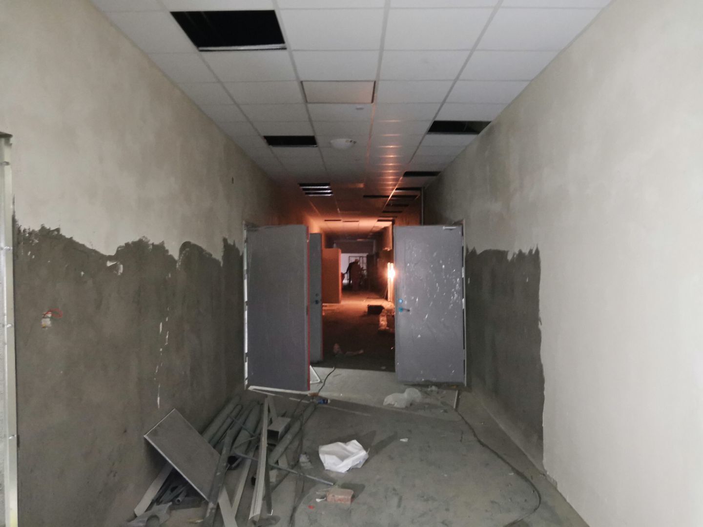 1,防火門安裝完成, 2,一樓彩鋼墻板完成90%,增項除外, 3,一樓衛生間貼磚完成50%, 4,水電安裝完成70%。