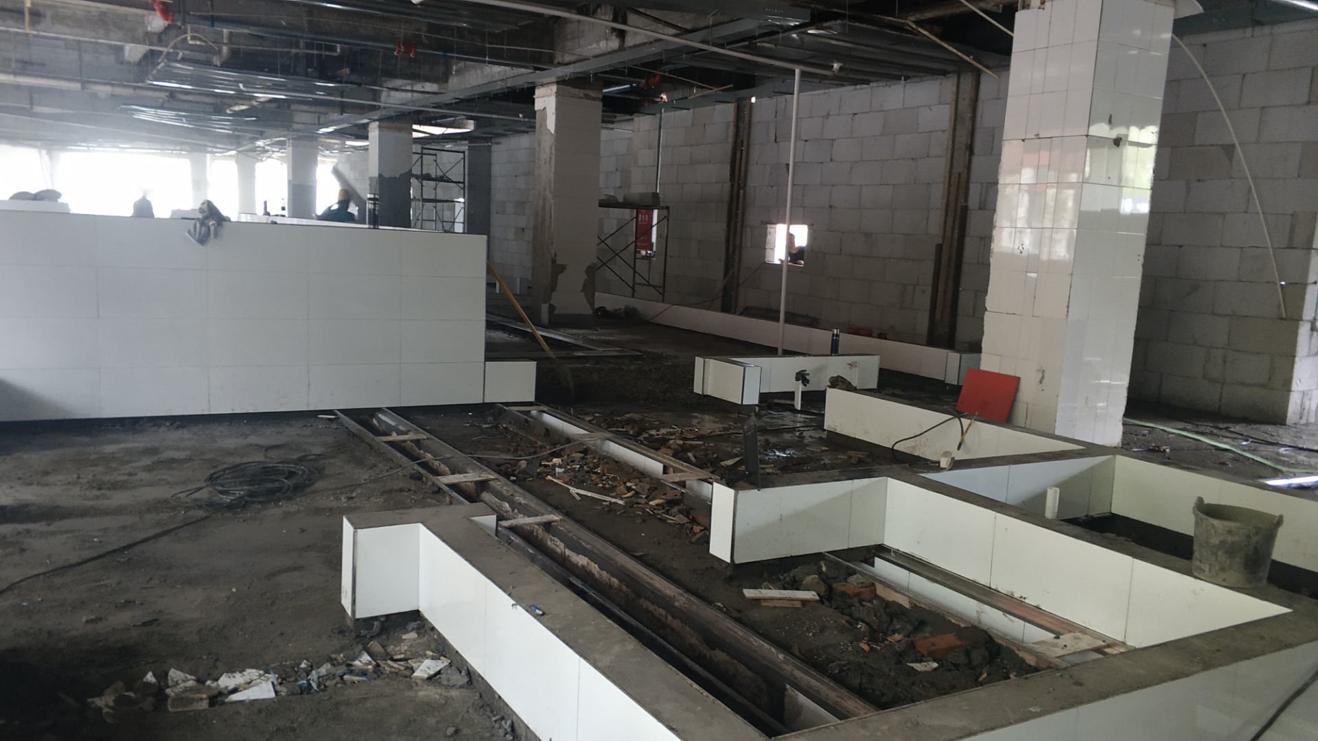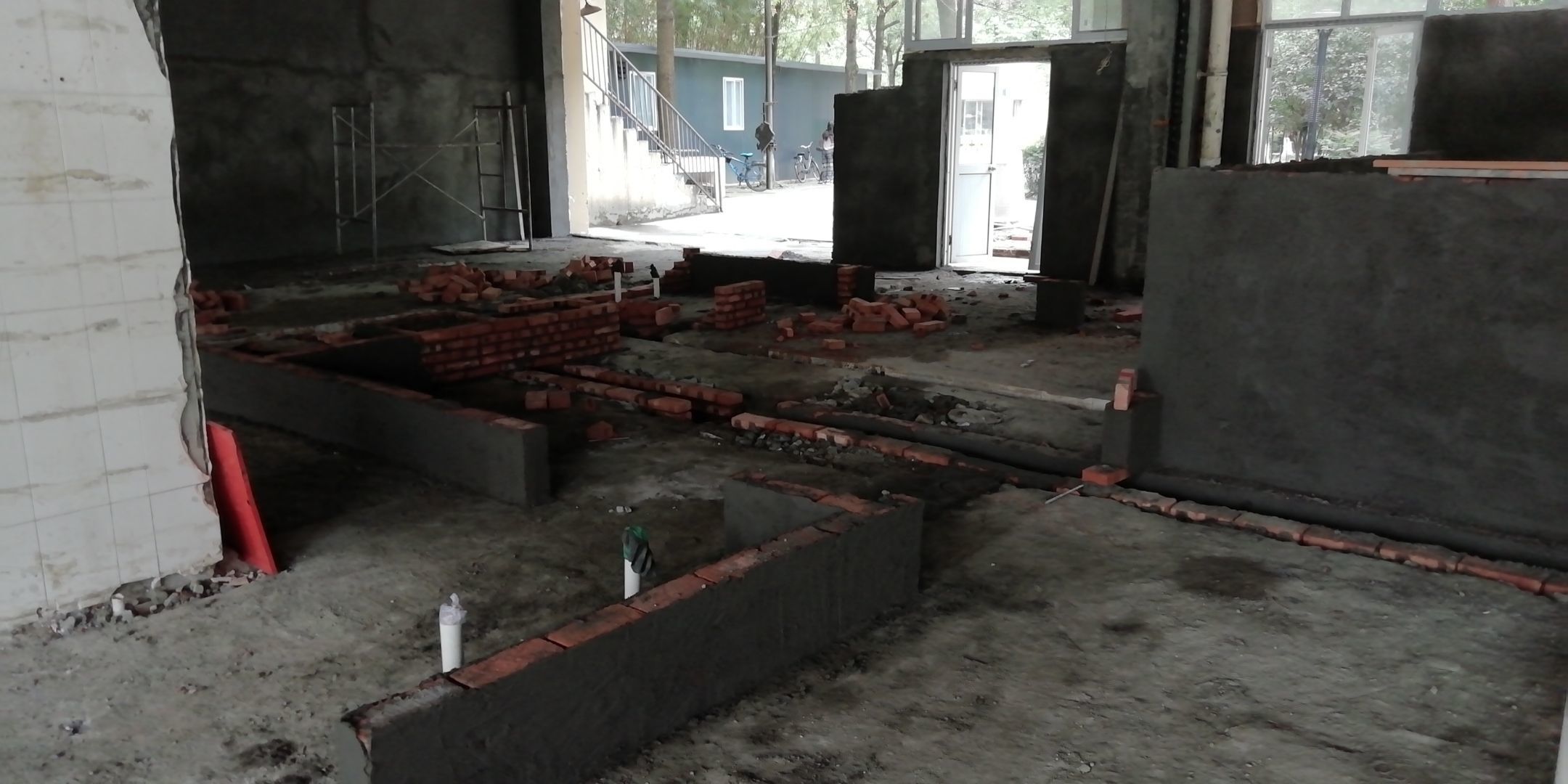 車間排水溝、擋水墻施工,車間地面鋪磚