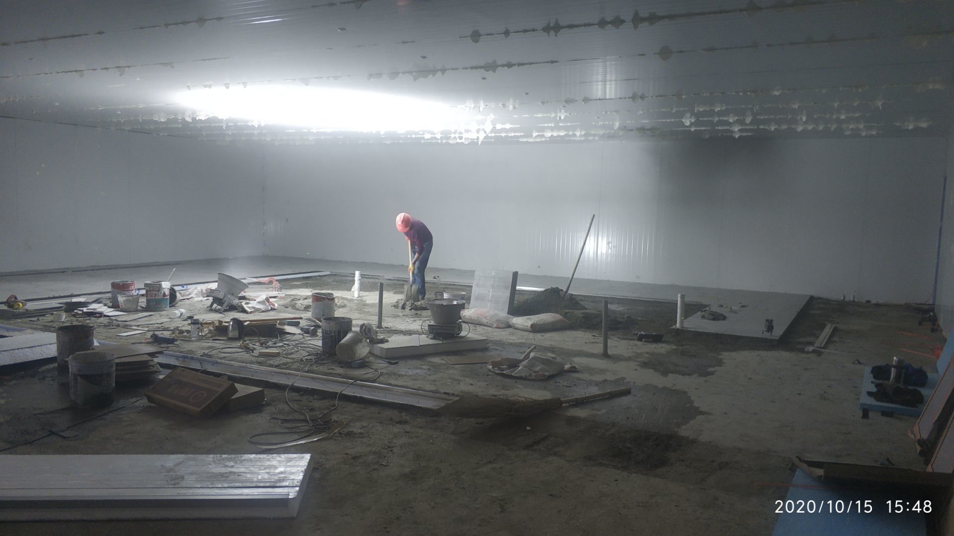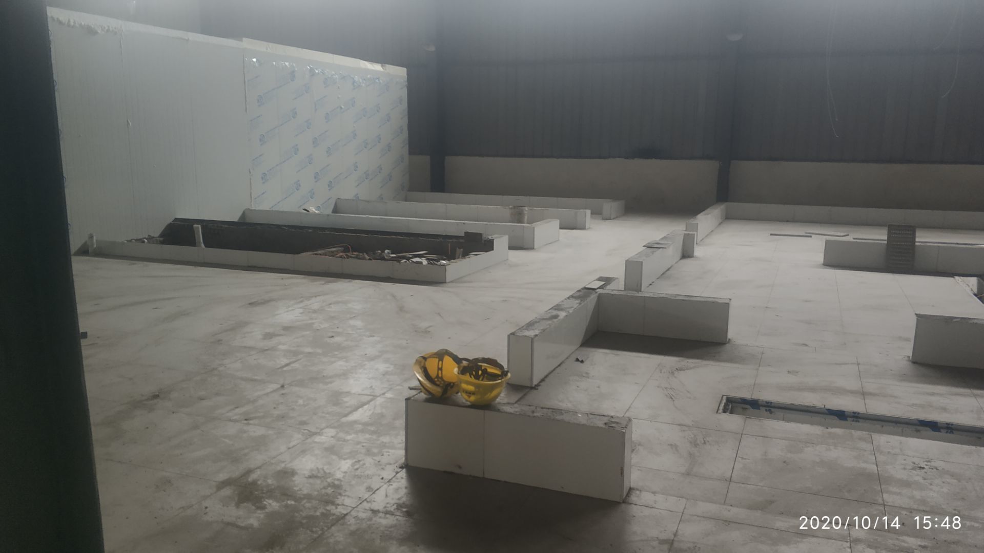 1.地面瓷磚鋪貼完成百分之八十。 2.凍庫墻板安裝施工完成百分之五。