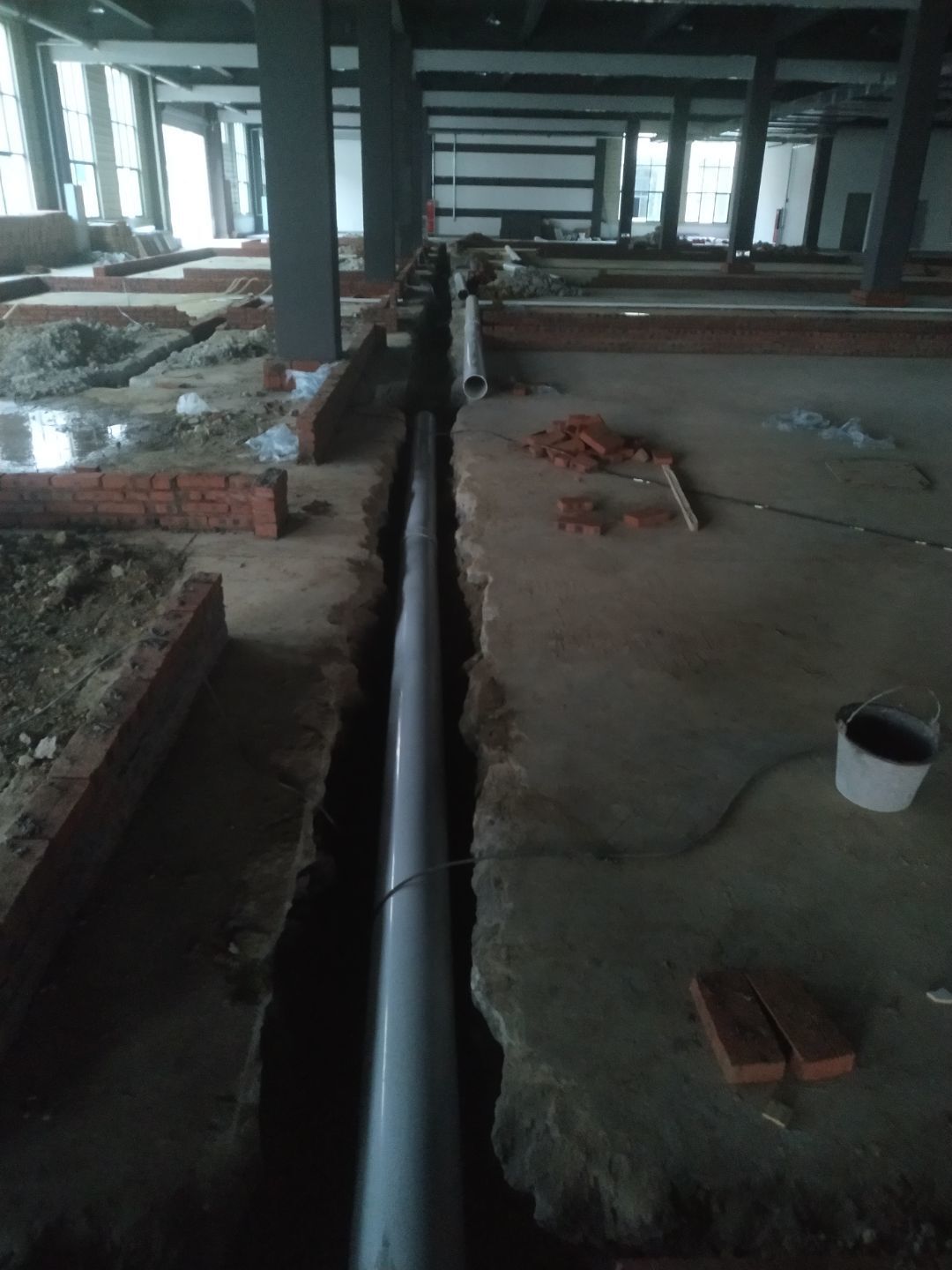 車間安裝現場臨時配電箱和臨時用水,車間排水溝放線,切縫完成40%。