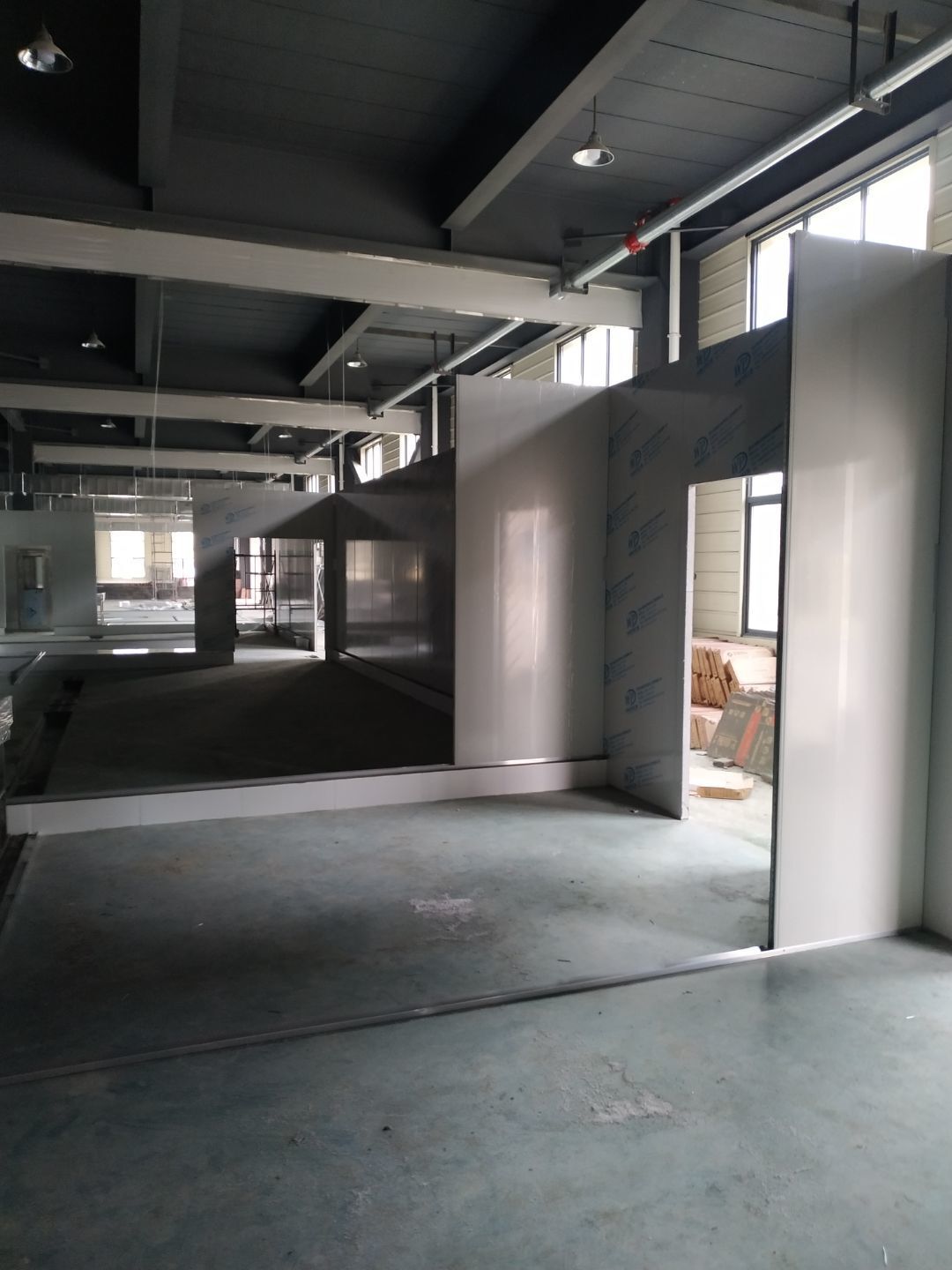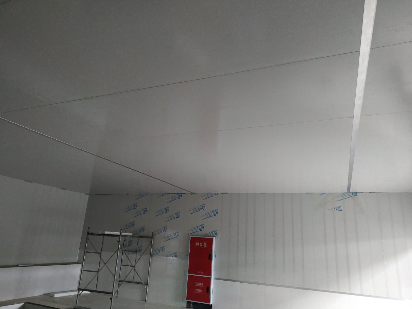 彩鋼板墻板安裝完成70%,頂板安裝完成30%,風管安裝完成70%。