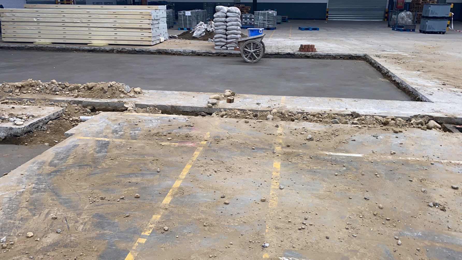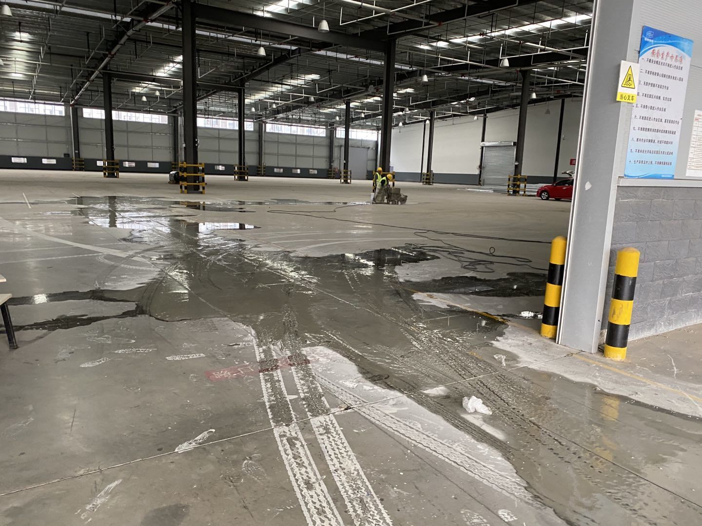 1. 4號廠房地坪養(yǎng)護(hù)。 2. 4號廠房彩鋼隔墻完成百分之十。 3. 4號廠房地槽安裝。 4. 3號廠房實(shí)驗(yàn)室辦公室圓弧安裝,打膠完成百分之60。 5. 3號廠房地坪混凝土澆筑完成。