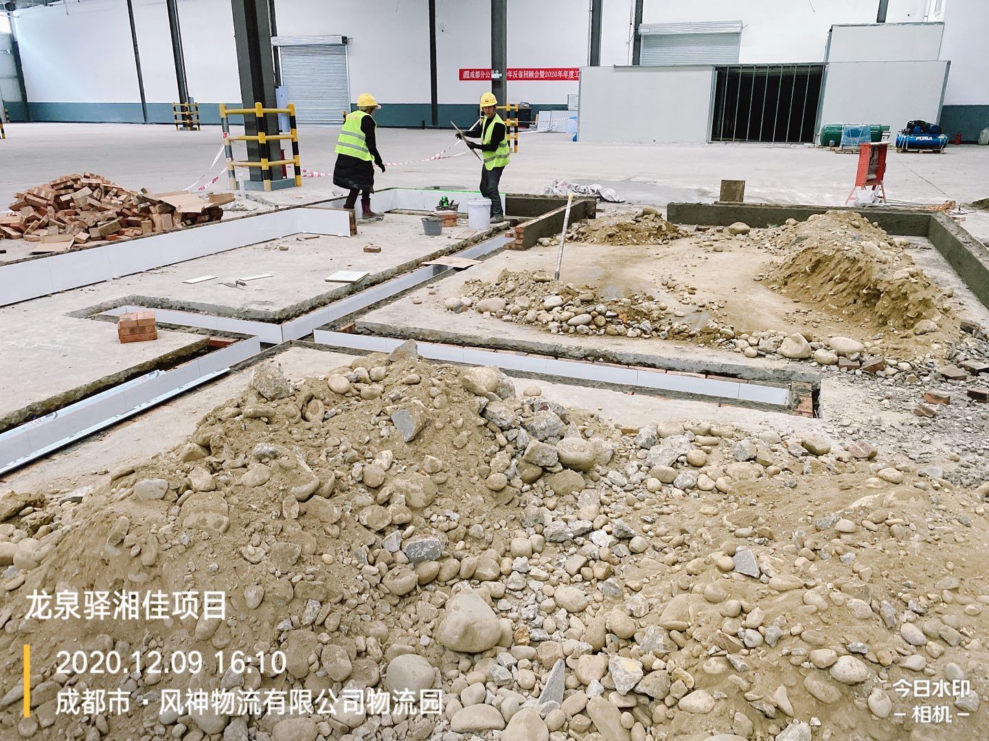 車間擋水墻瓷磚鋪貼完成70%,排水管埋設(shè)、土方回填完成,剩余土方清運(yùn)離場完成60%。