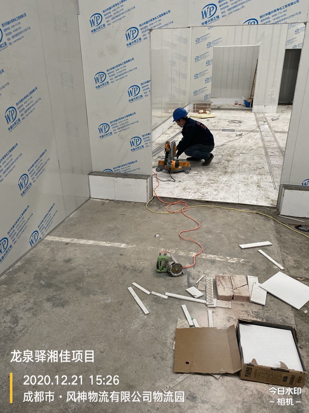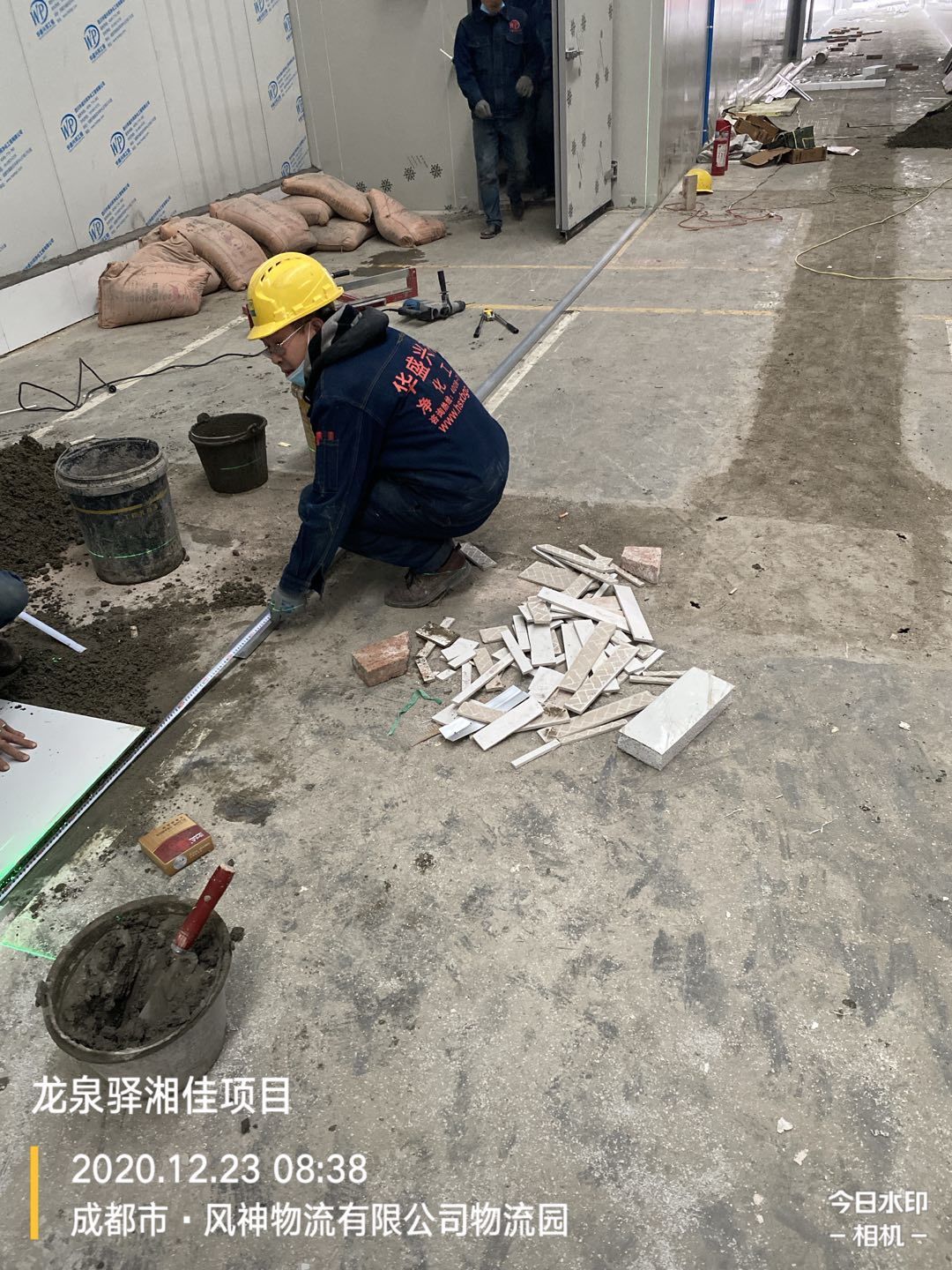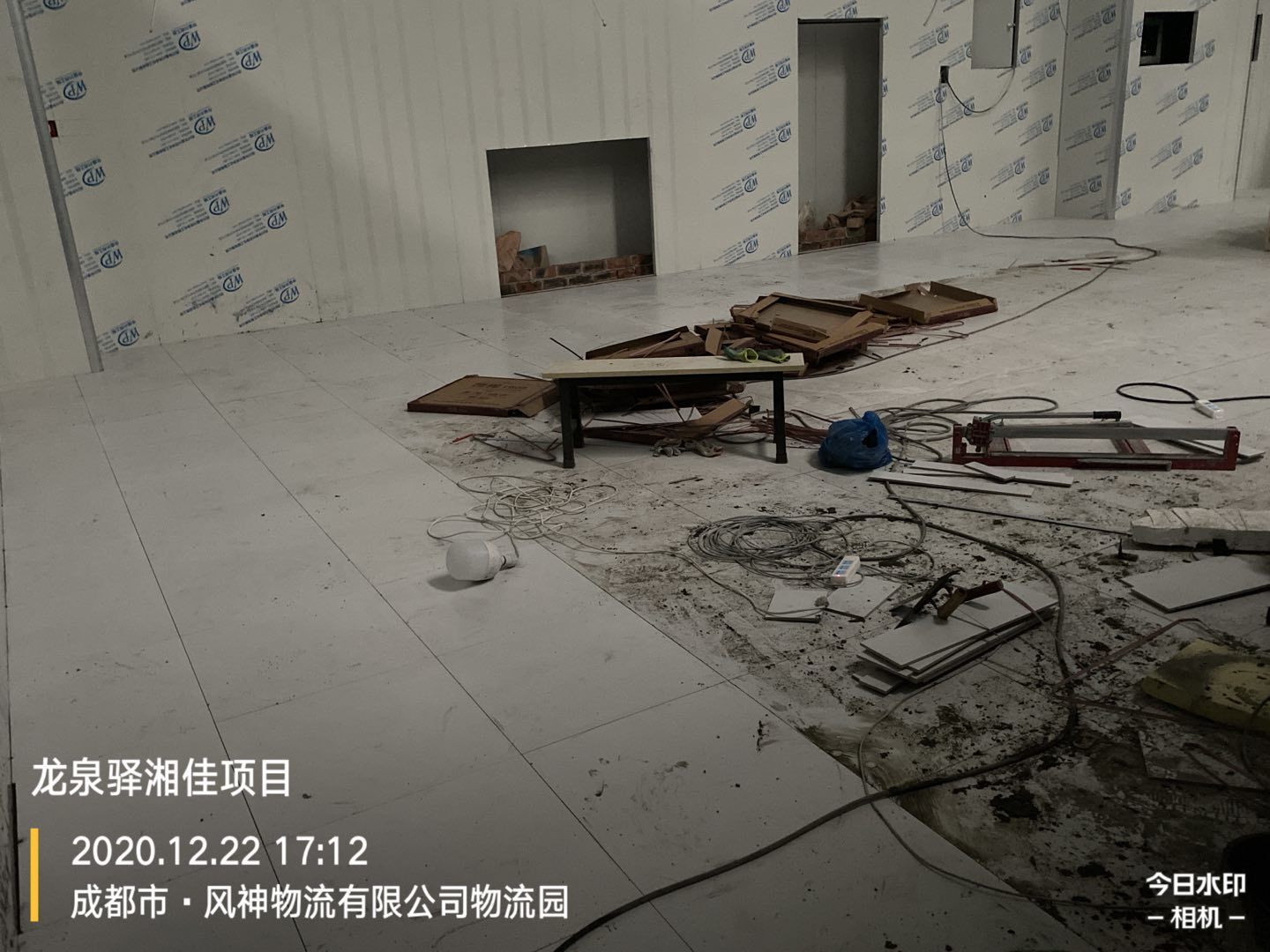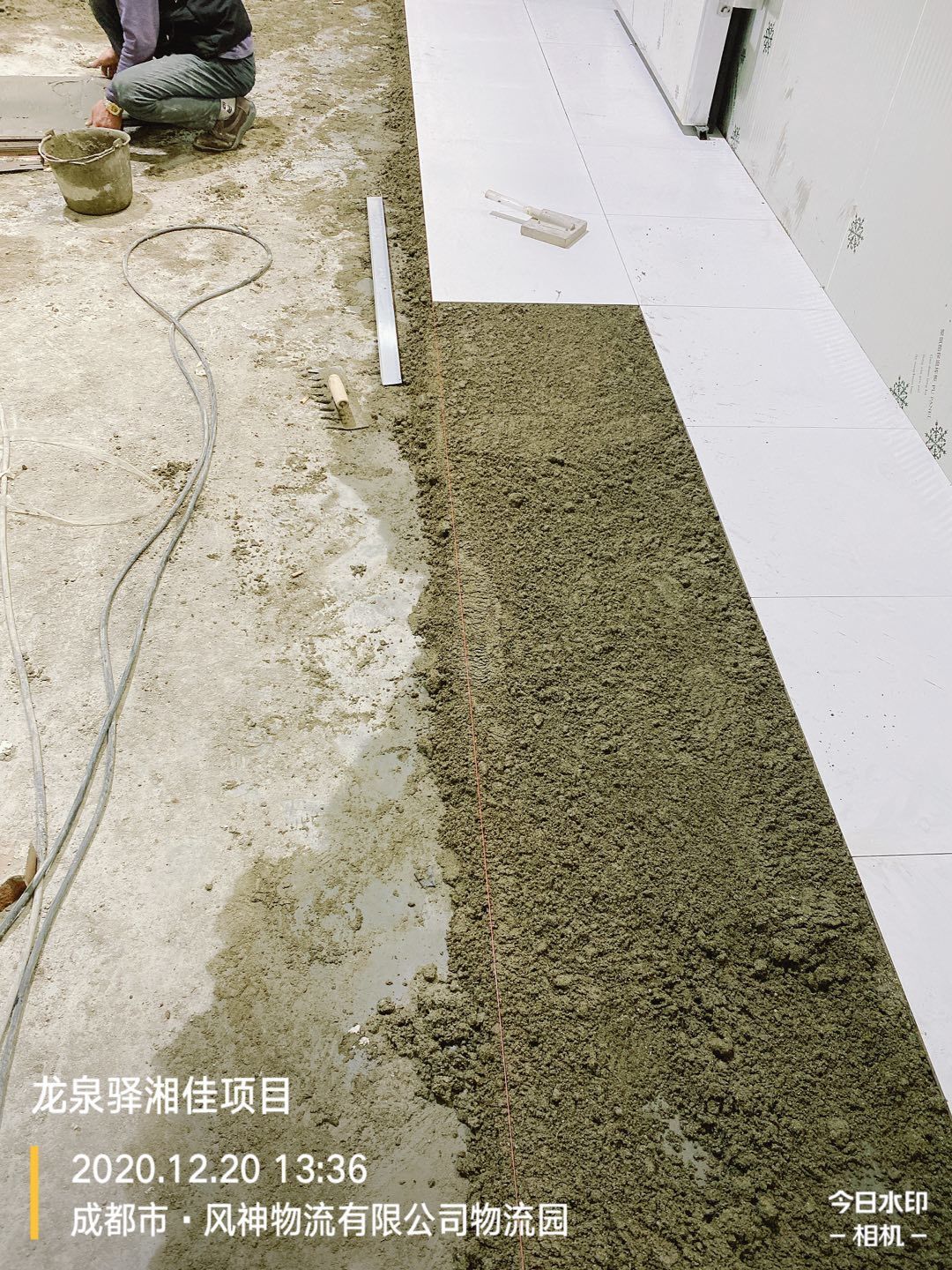 墻體打膠,地面瓷磚鋪設(shè)
