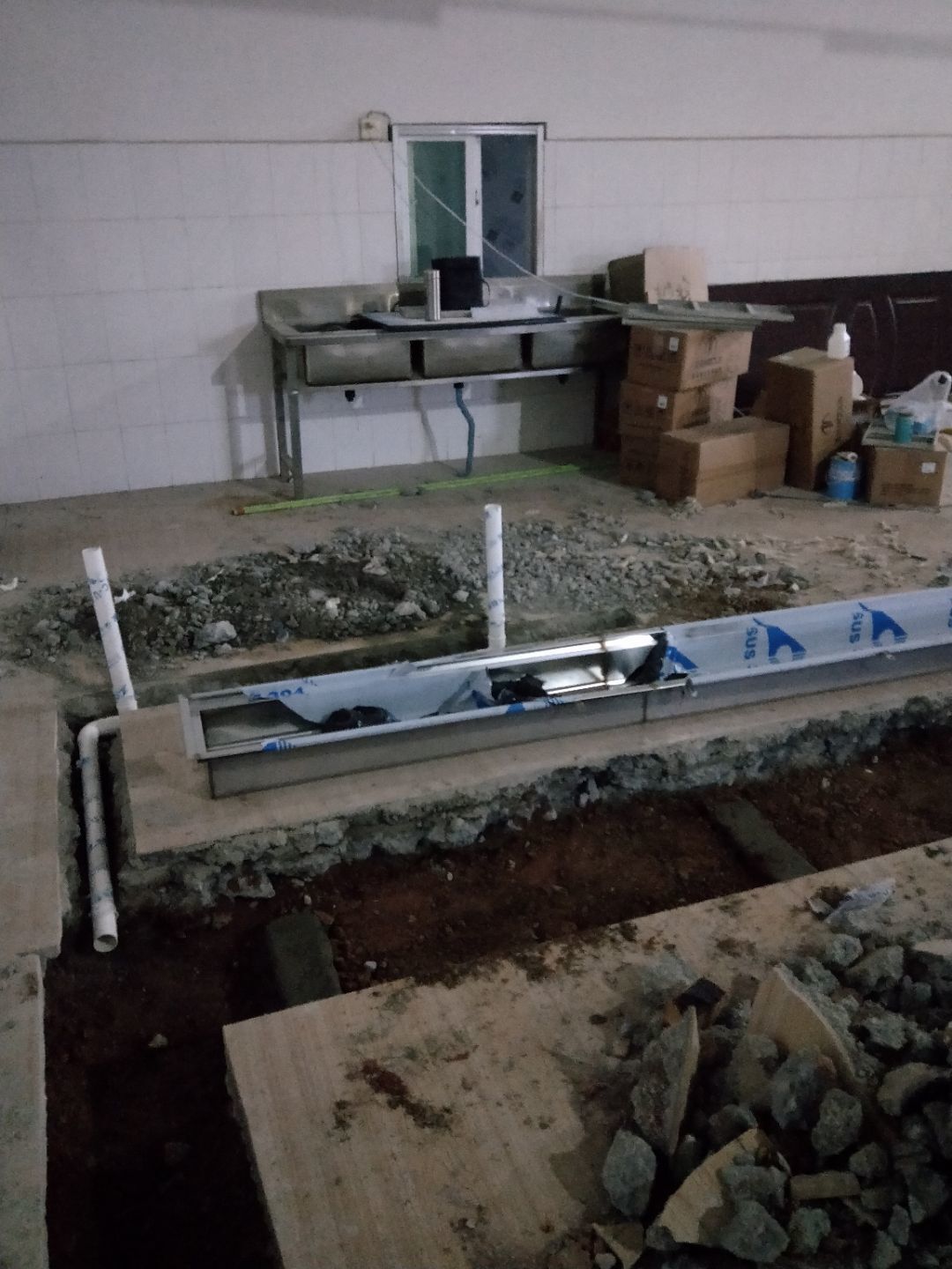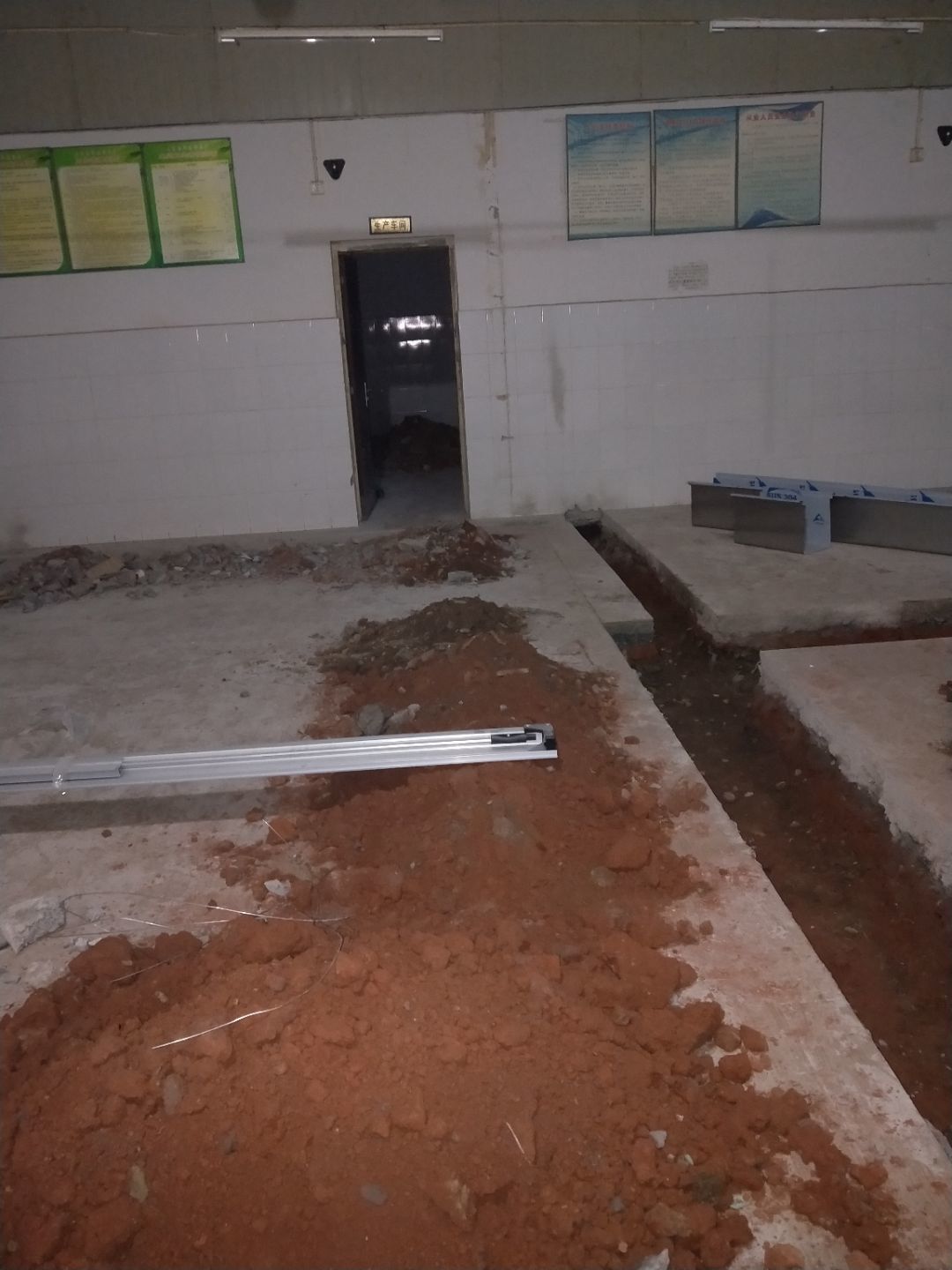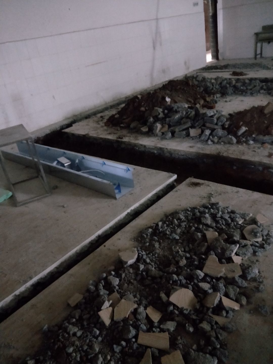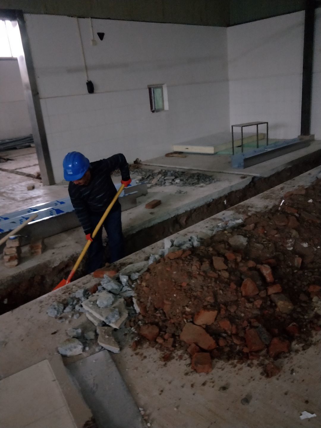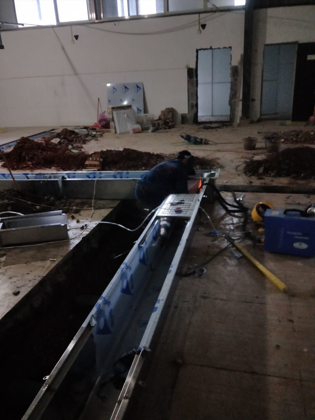 排水溝焊接完成90%,開門洞完成100%,修補門邊完成5%,建渣清理