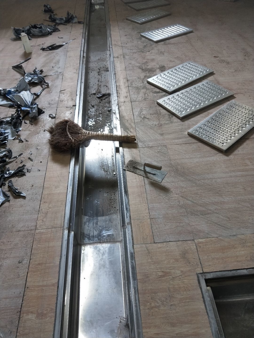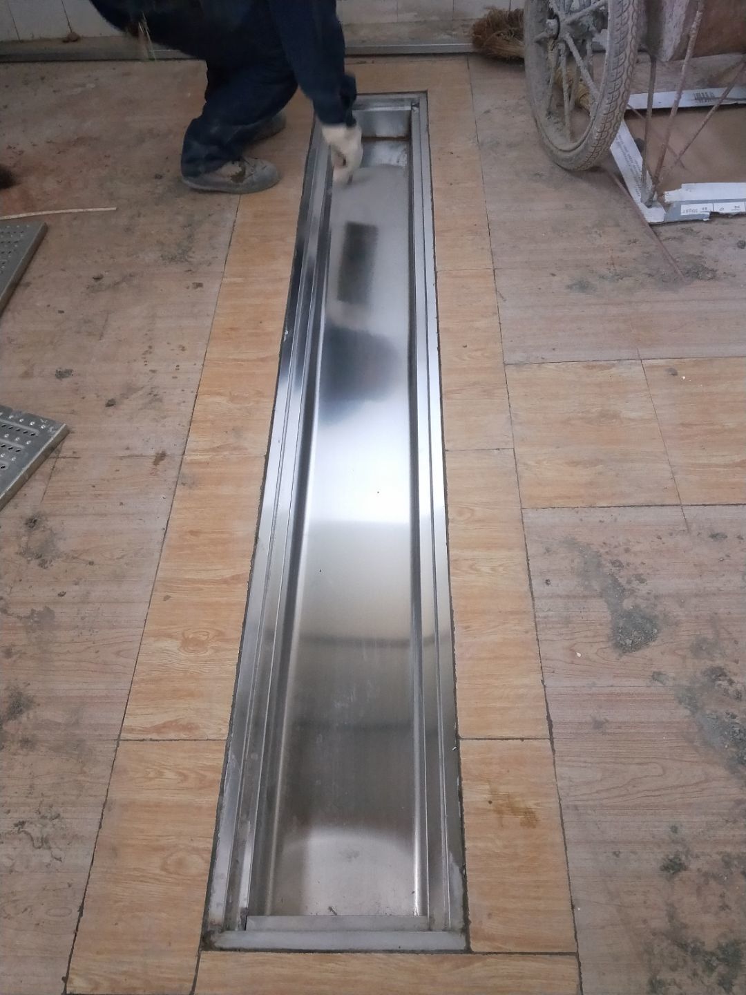開門洞完成70%,不銹鋼排水溝焊接完成30%