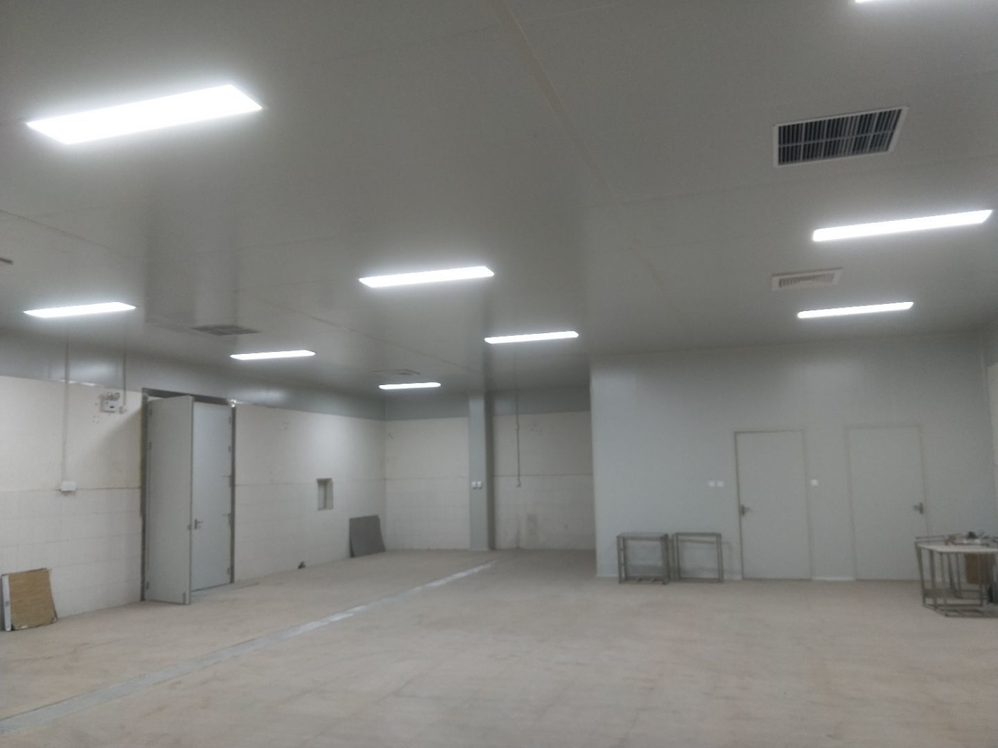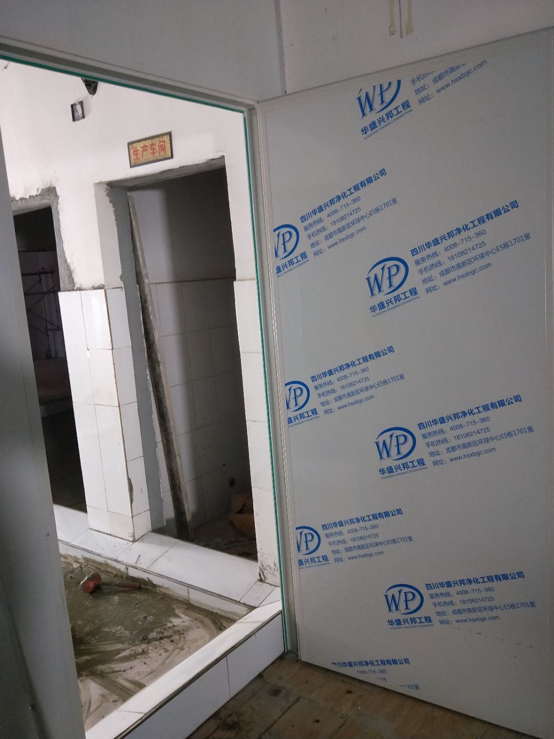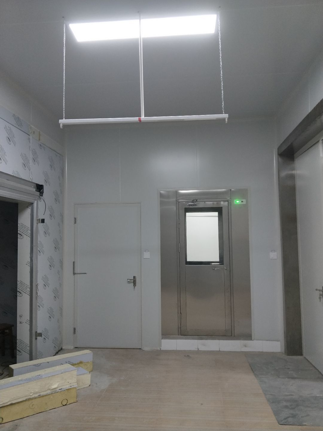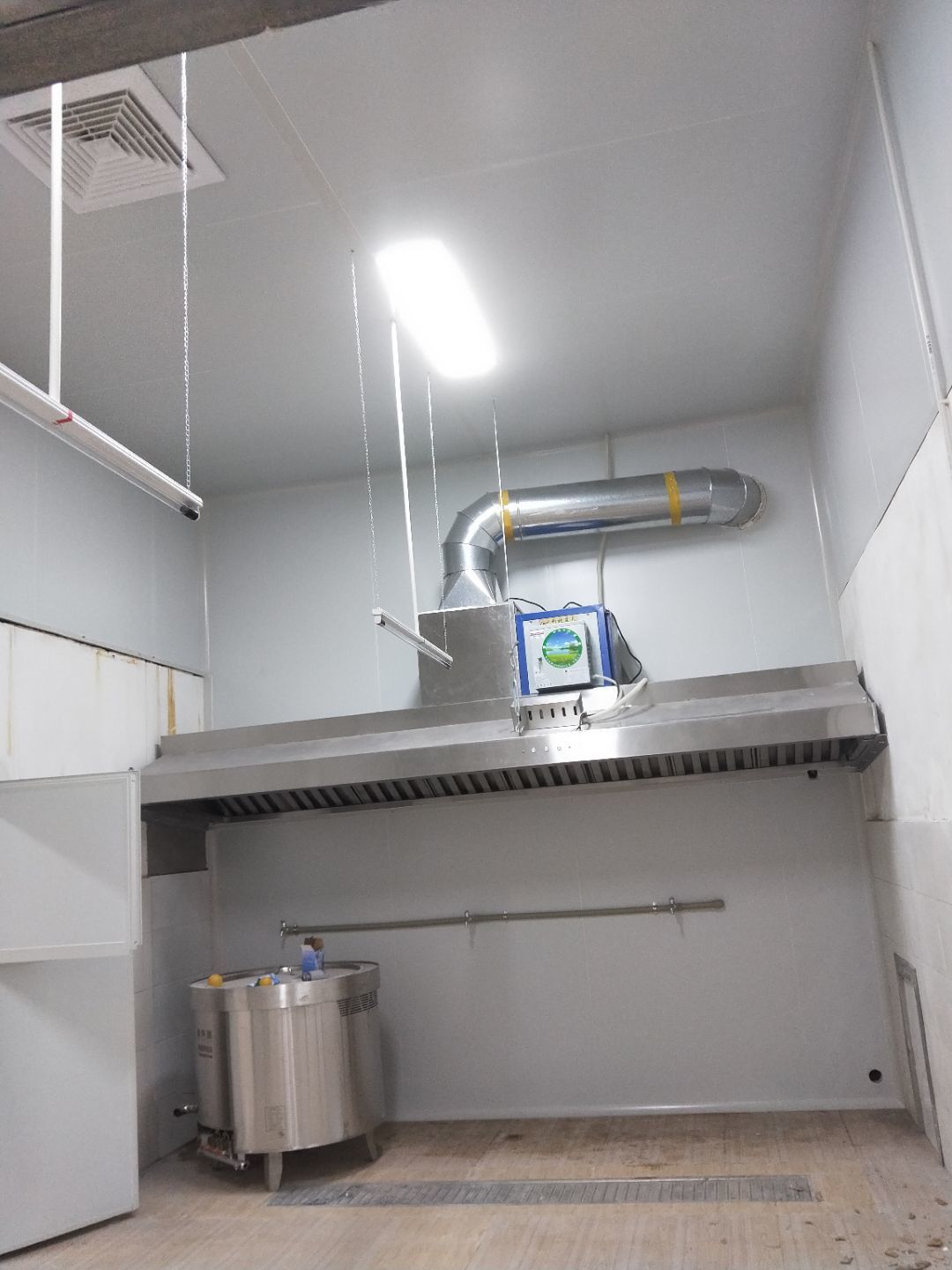 綿陽每食智造食品有限公司廠房裝修現場,門安裝,油煙系統安裝,風淋室安裝