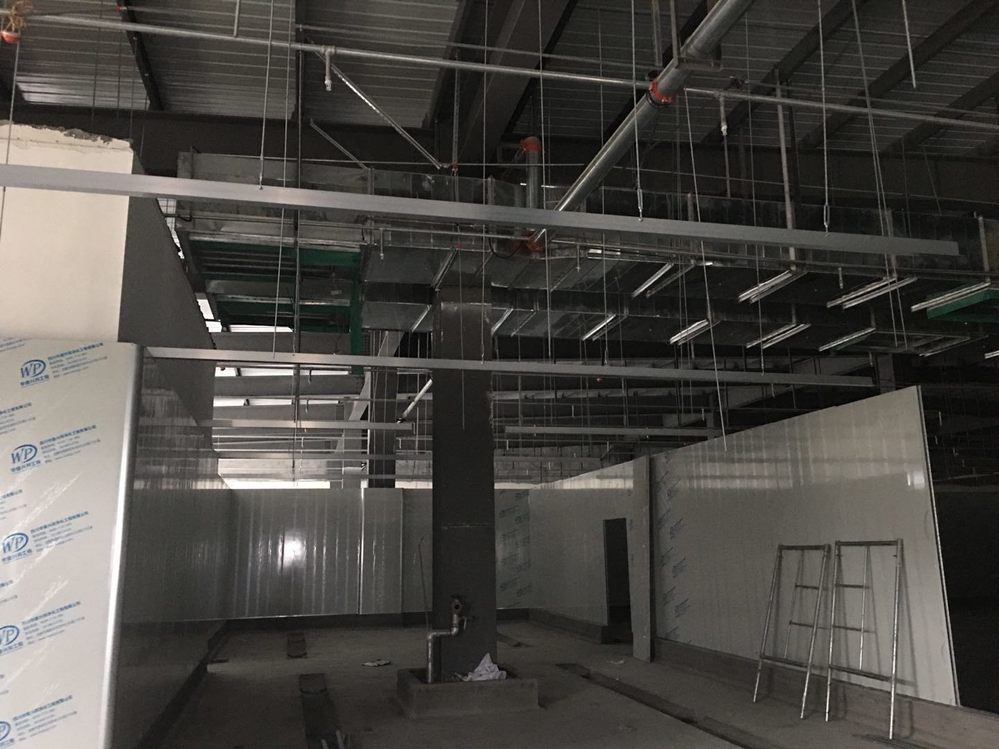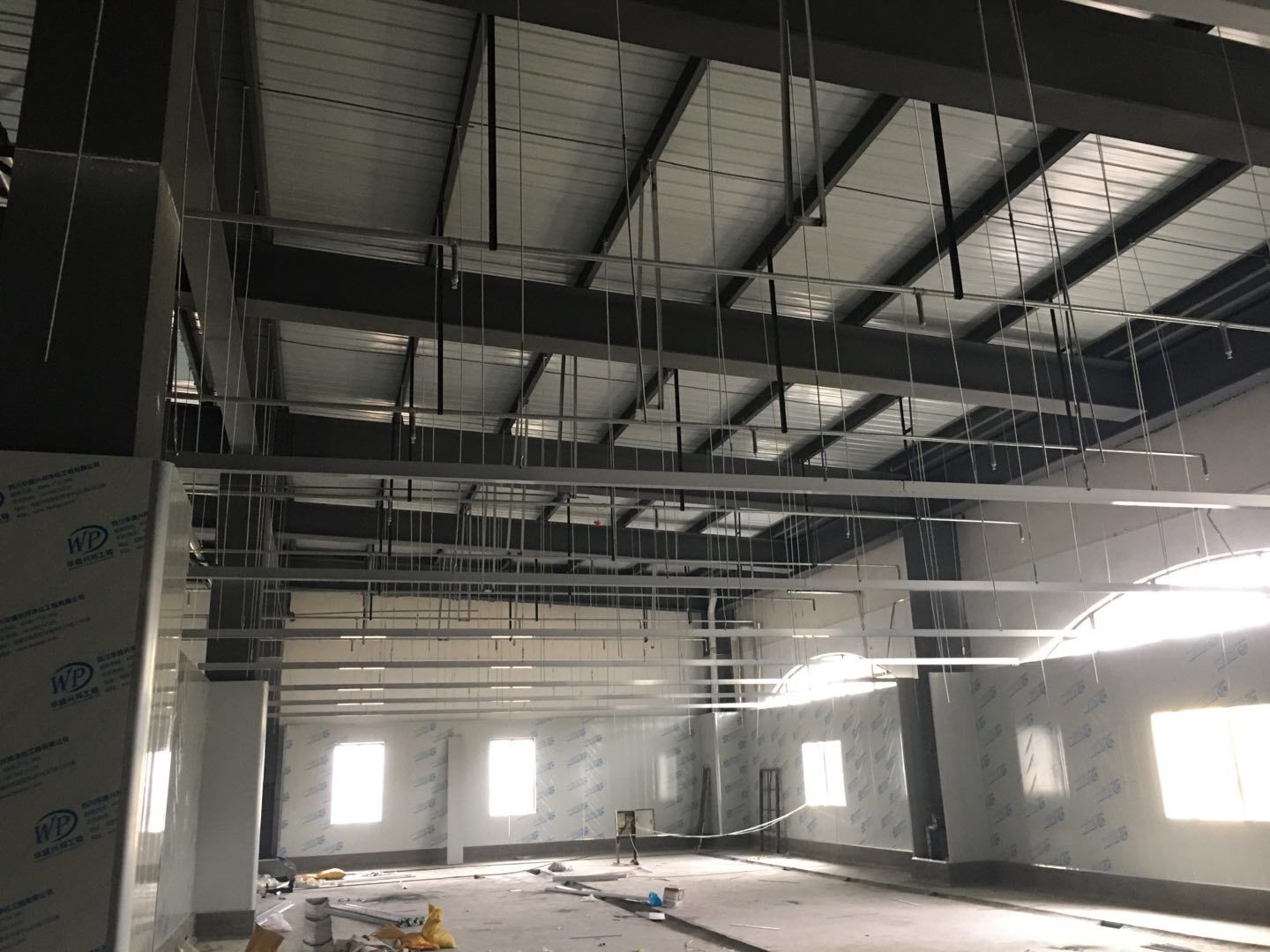 1:彩板班組~收尾工作進(jìn)度30%。2:空調(diào)班組~管道安裝完成,風(fēng)機已吊裝2臺,主機配管。3:水電班組-布線配管。整體進(jìn)度約80%。
