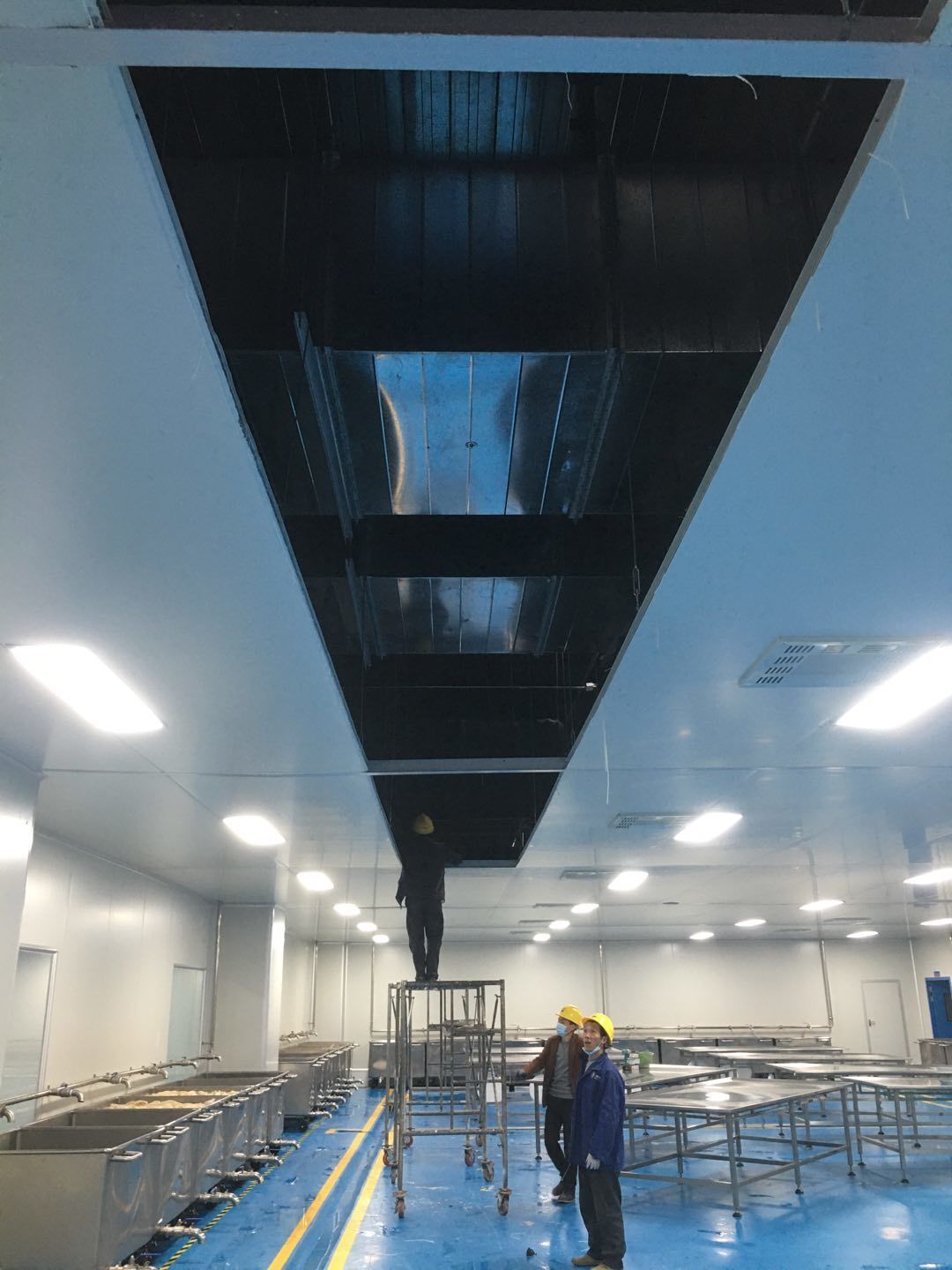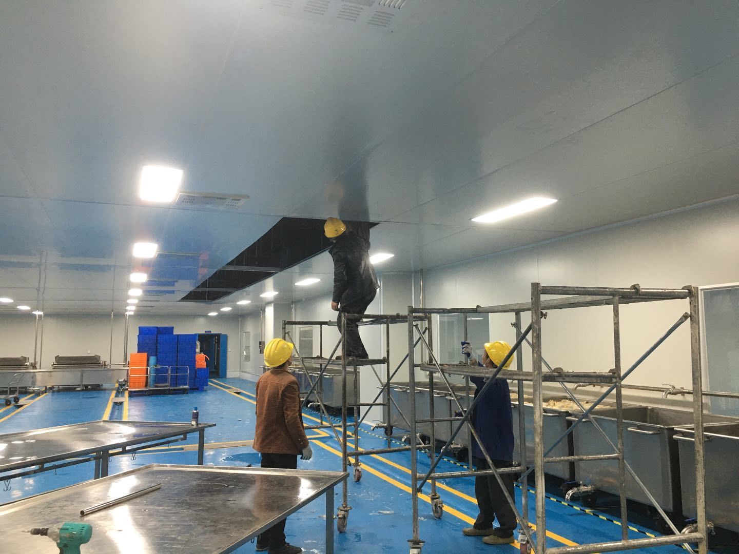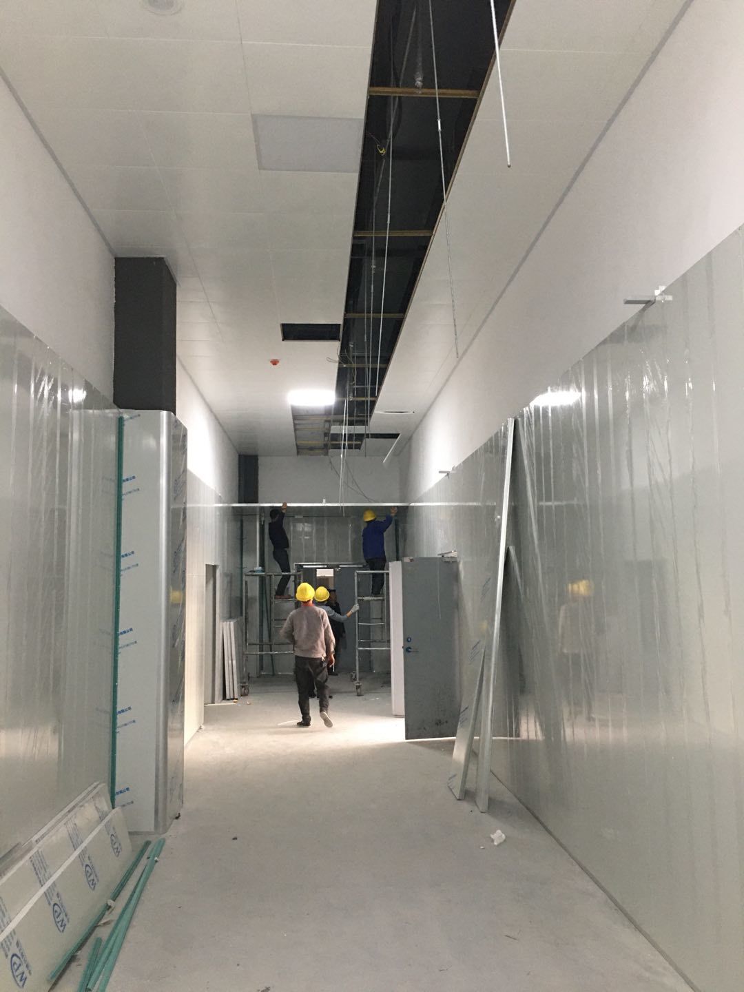 1:彩板班組~收尾工作進(jìn)度50%左右。2:空調(diào)班組~主要設(shè)備及風(fēng)道均已吊裝完成。剩余工作:主機配管,配線調(diào)試,安裝風(fēng)口。3:水電班組-空調(diào)電源配線完成約35%,剩余工作:動力電施工,吊頂?shù)浇o水點位的不銹鋼管施工,配電箱安裝調(diào)試。