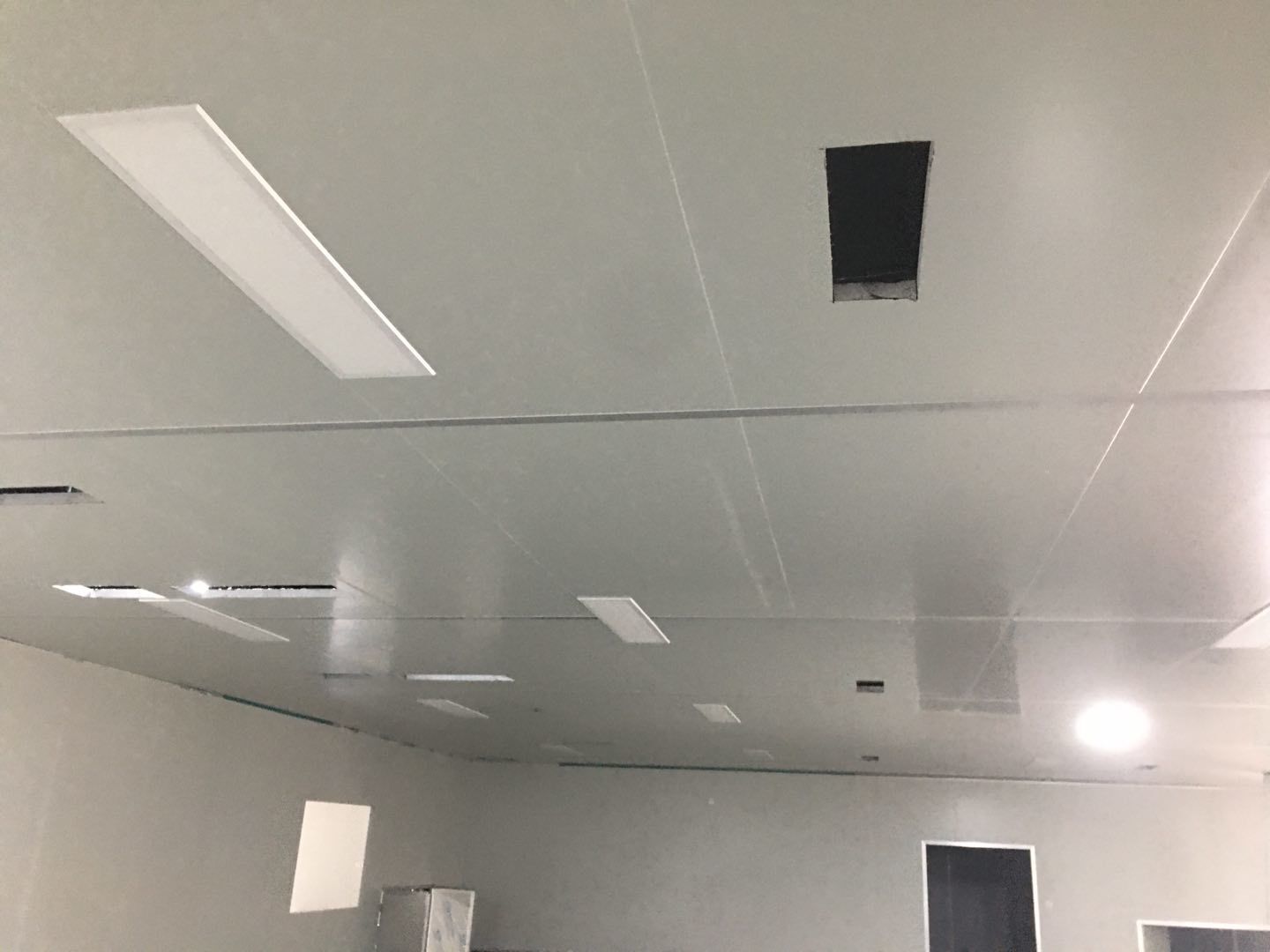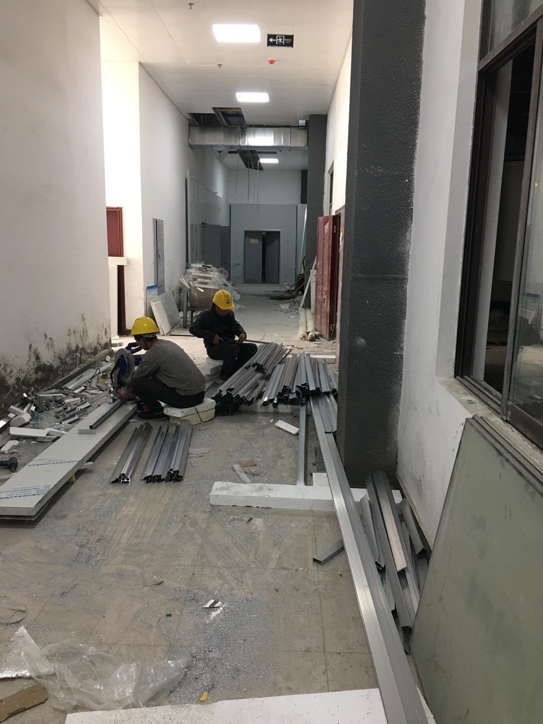 1:泡制車間T型鋁掛設(shè)完成2:前處理區(qū)絲桿掛設(shè)完畢,整體進(jìn)度約為65%。3:隔墻通道門洞包飾處理進(jìn)度較慢,已完成約25%