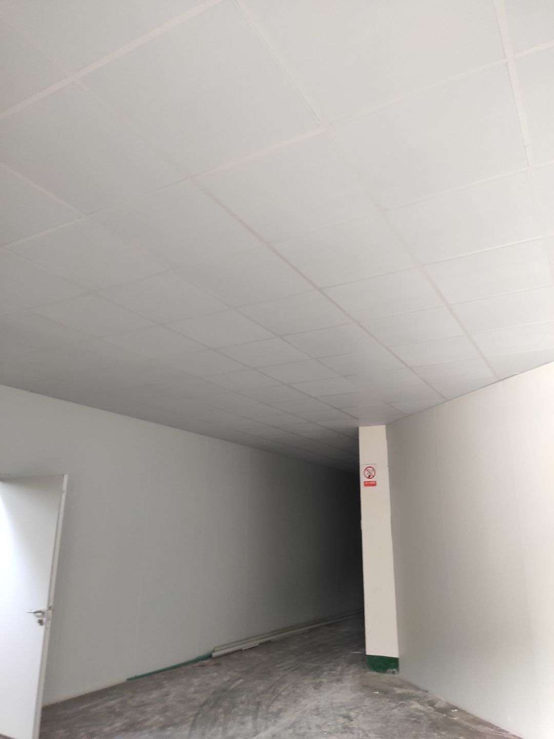 周轉框清洗間彩鋼板吊頂安裝完成,庫房撕膜打膠完成,周轉框清洗間彩鋼瓦墻板安裝完成。撕膜完成40%,圓弧安裝完成50%。