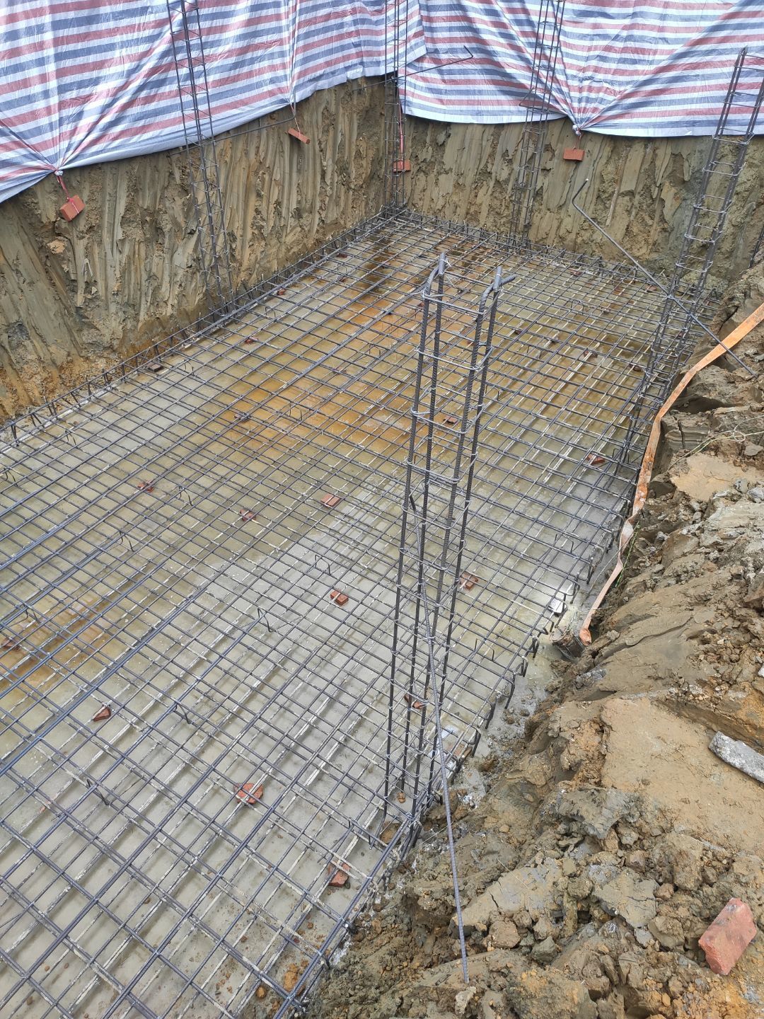 場地平整完成;通風口模板和鋼筋捆扎完成。
