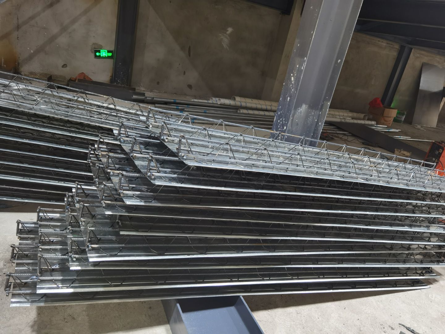 1彩板一樓隔墻安裝;2二三樓打膠 收圓弧;3二三樓燈線敷設;4二三樓風口安裝;5樓梯貼磚;6一層貼磚。