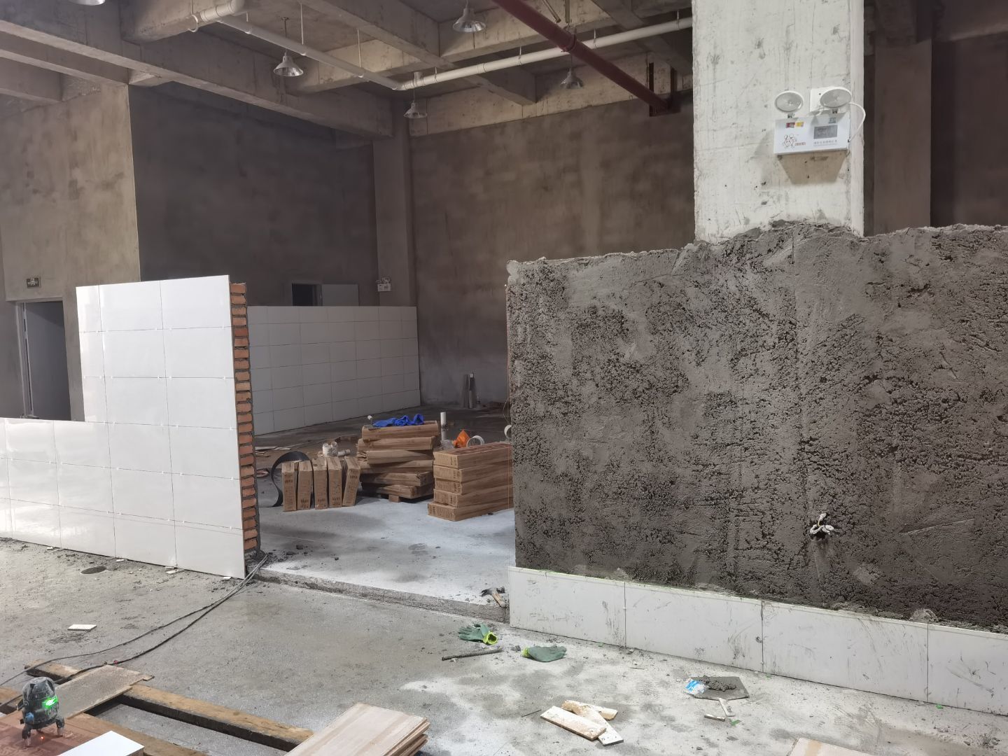 九尺臘肉項目廠房裝修現場: 1、水泥河沙材料到位 2、二三樓烘房放線完成 3、一層磨漿清理。