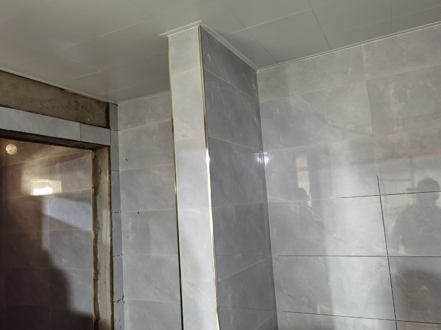1、一層廁所砌磚完成 ;2、烘房貼磚 ;3、衛生間貼磚 ;4、彩板頂板到場。
