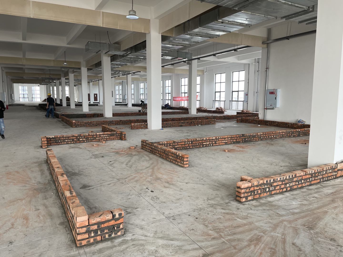 四川省牛丫牛食品有限公司廠房裝修現場:根據圖紙進行車間擋水墻放線,放線完成。