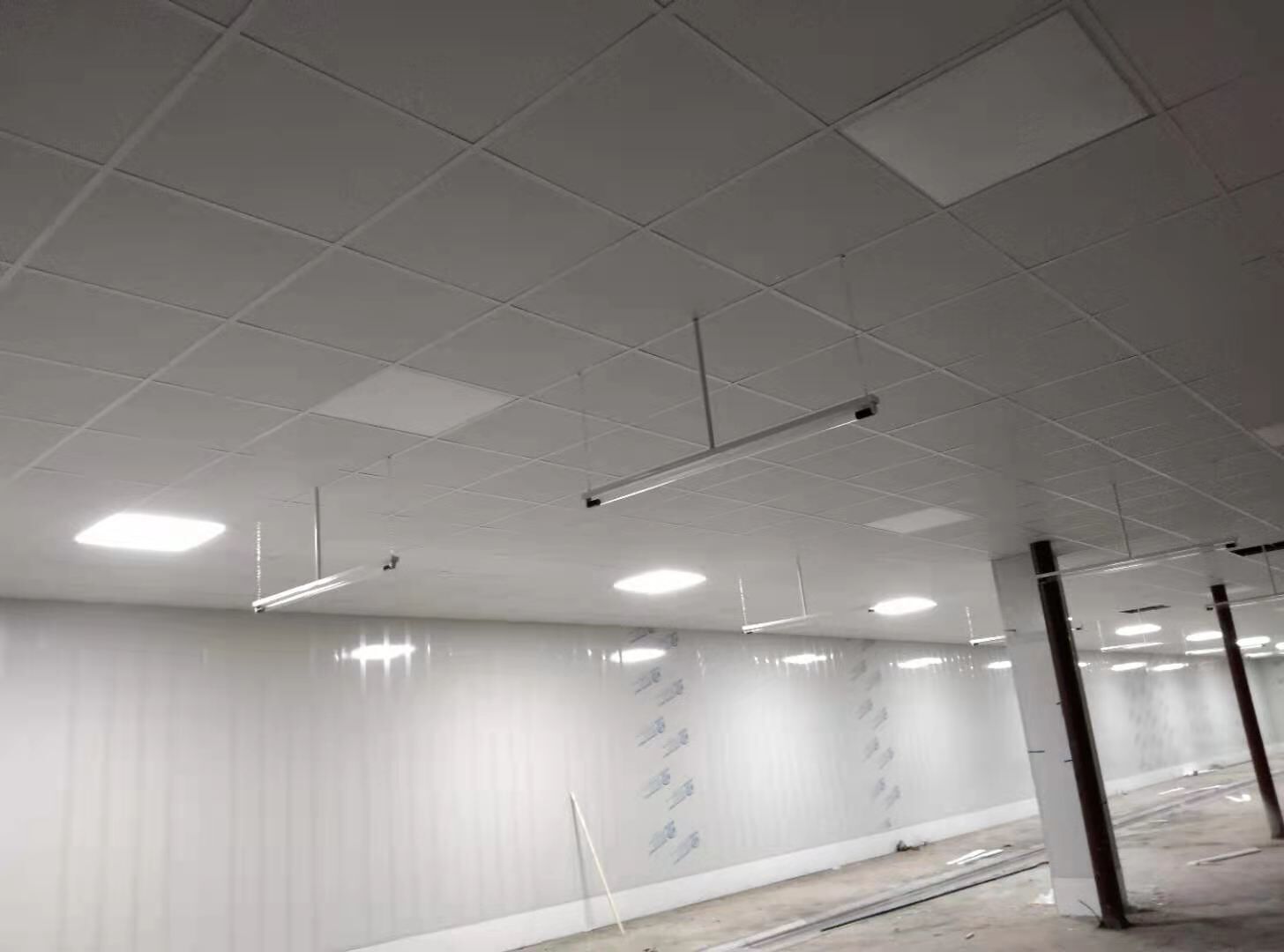 三防板安裝完成90%;燈具安裝40%,配管穿線完成25%,開關插座開孔完成,門制作安裝完成90%。