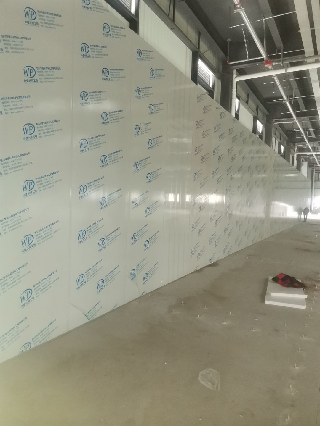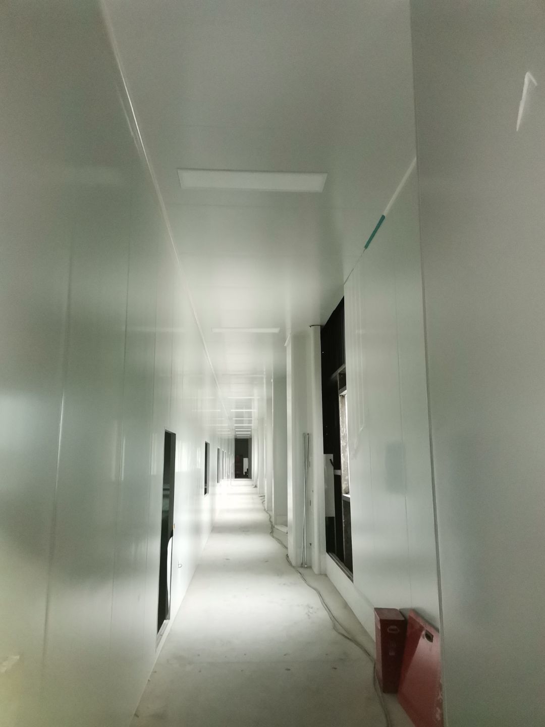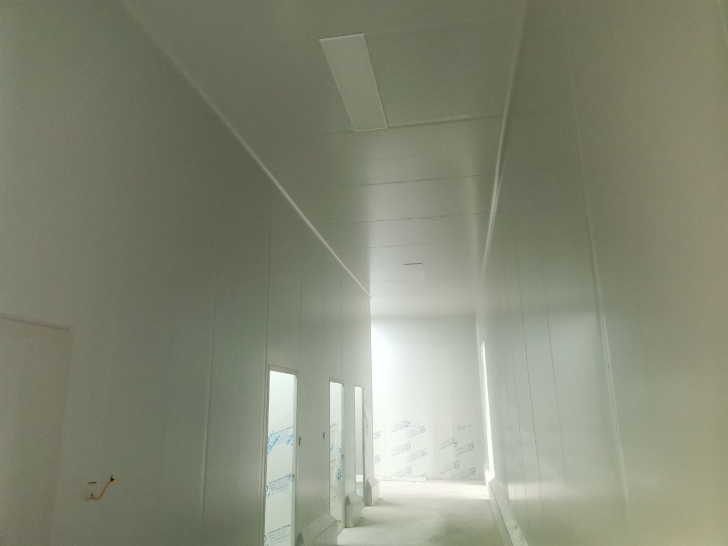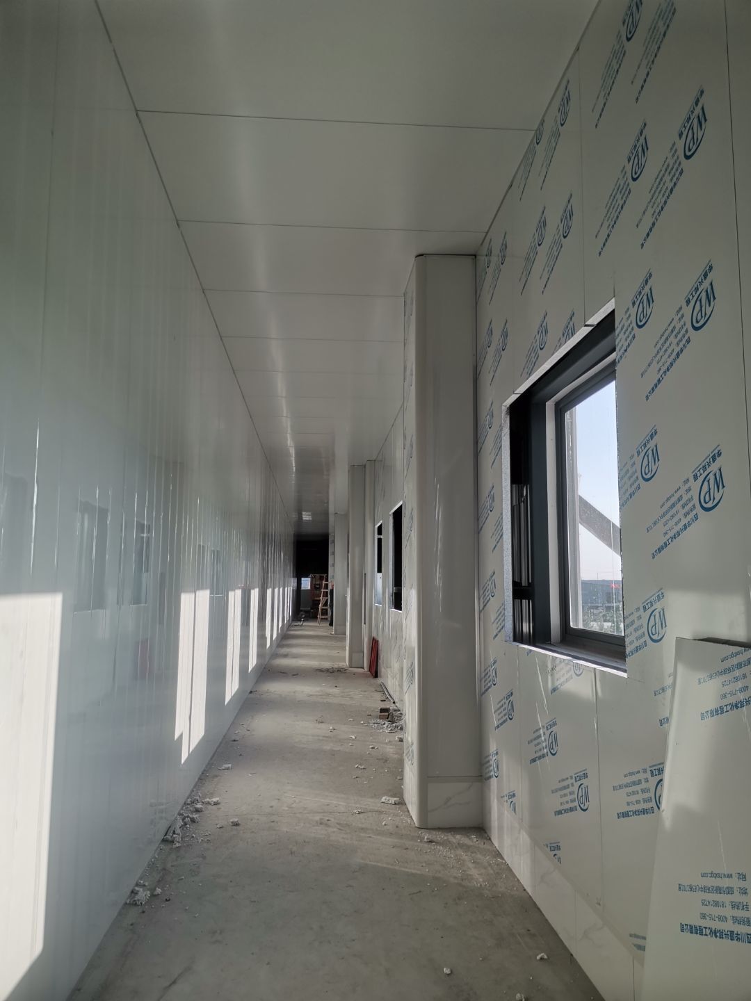 1、擋水墻貼磚完成95%(剩余吊裝口完成后實施); 2、凍庫庫板安裝完成100%,頂板完成100%; 3、低溫庫加熱絲安裝完成100%,保護層完成100%,擠塑板完成100%,凍庫地面混凝土澆筑完成100%,切縫完成,養護; 3、彩鋼板安裝完成85%; 4、頂板安裝完成85%; 5、實驗室墻板頂板完成100%; 6、化驗室墻板頂板完成100%; 7、工具間墻板完成100%。
