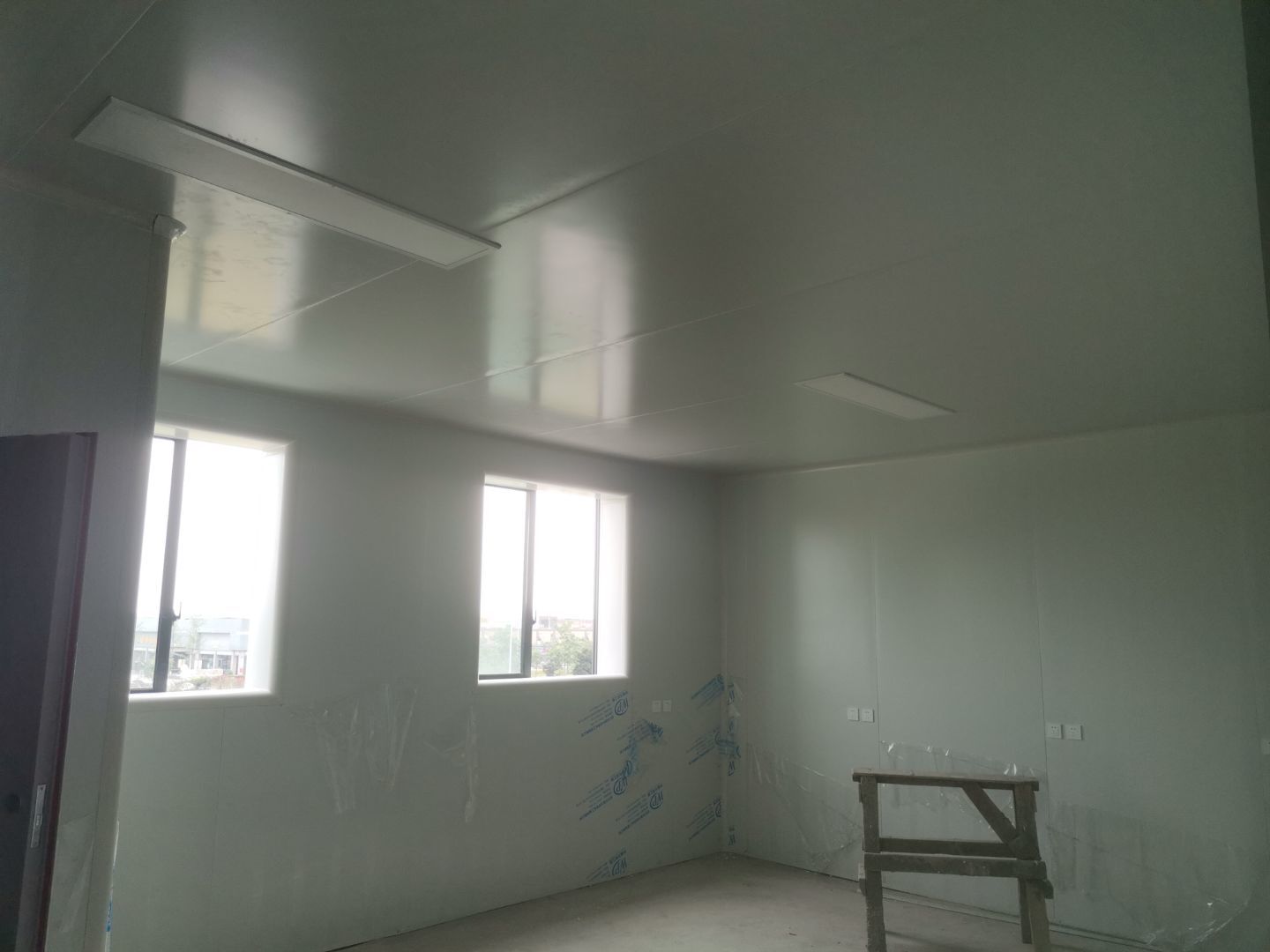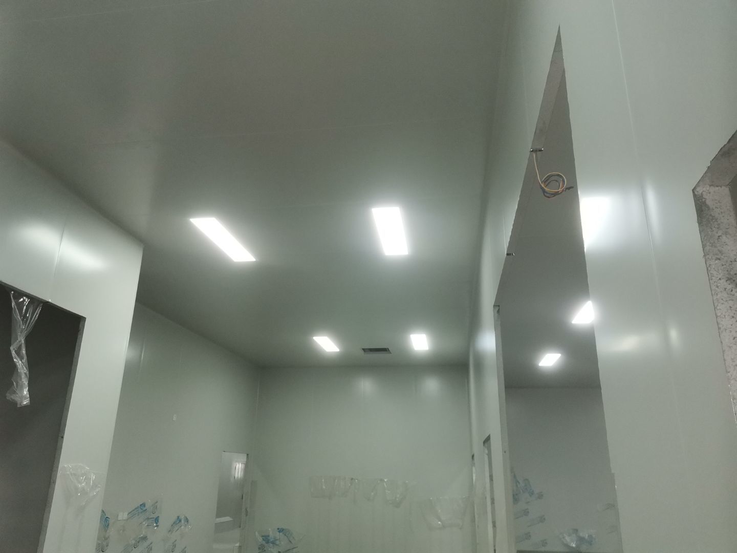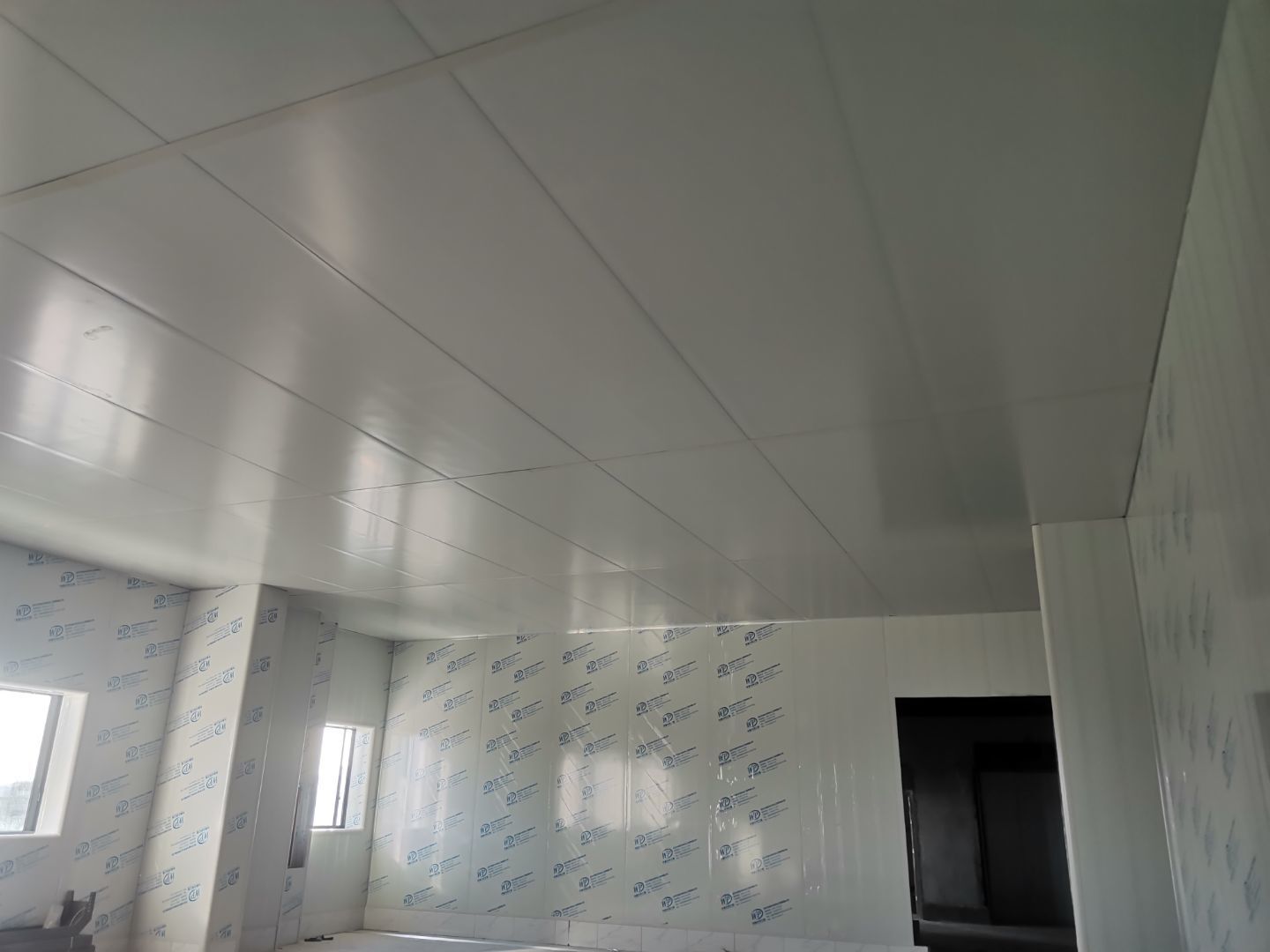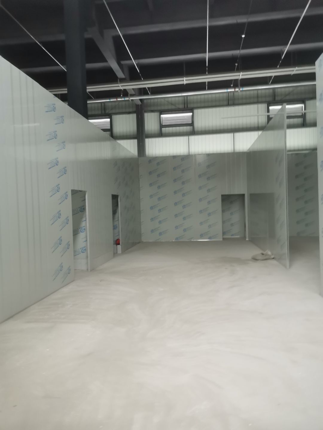 1、擋水墻貼磚完成95%(剩余吊裝口完成后實施); 2、凍庫庫板安裝完成100%,頂板完成100%; 3、低溫庫加熱絲安裝完成100%,保護層完成100%,擠塑板完成100%,凍庫地面混凝土澆筑完成100%,切縫完成,養護; 3、彩鋼板安裝完成85%; 4、頂板安裝完成85%; 5、實驗室墻板頂板完成100%; 6、化驗室墻板頂板完成100%; 7、工具間墻板完成100%。