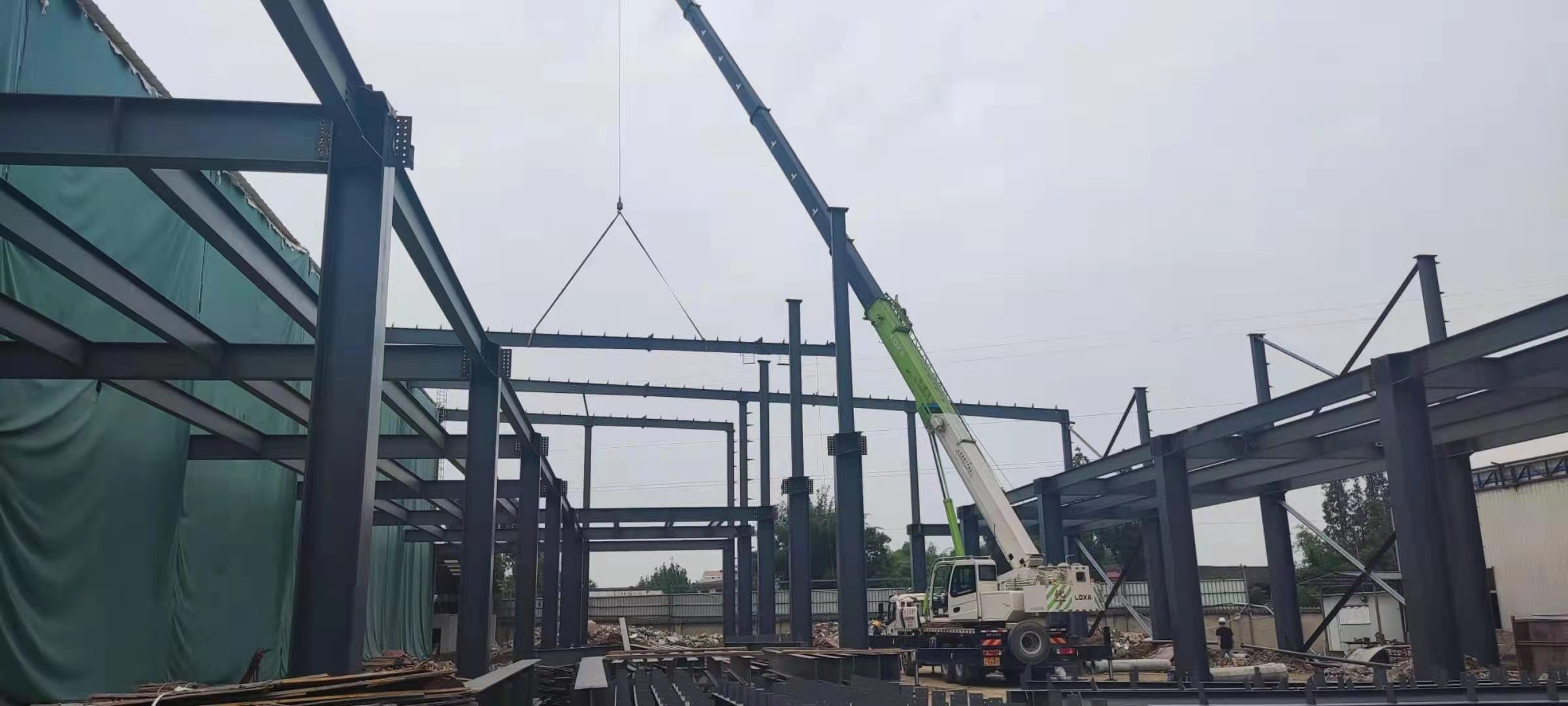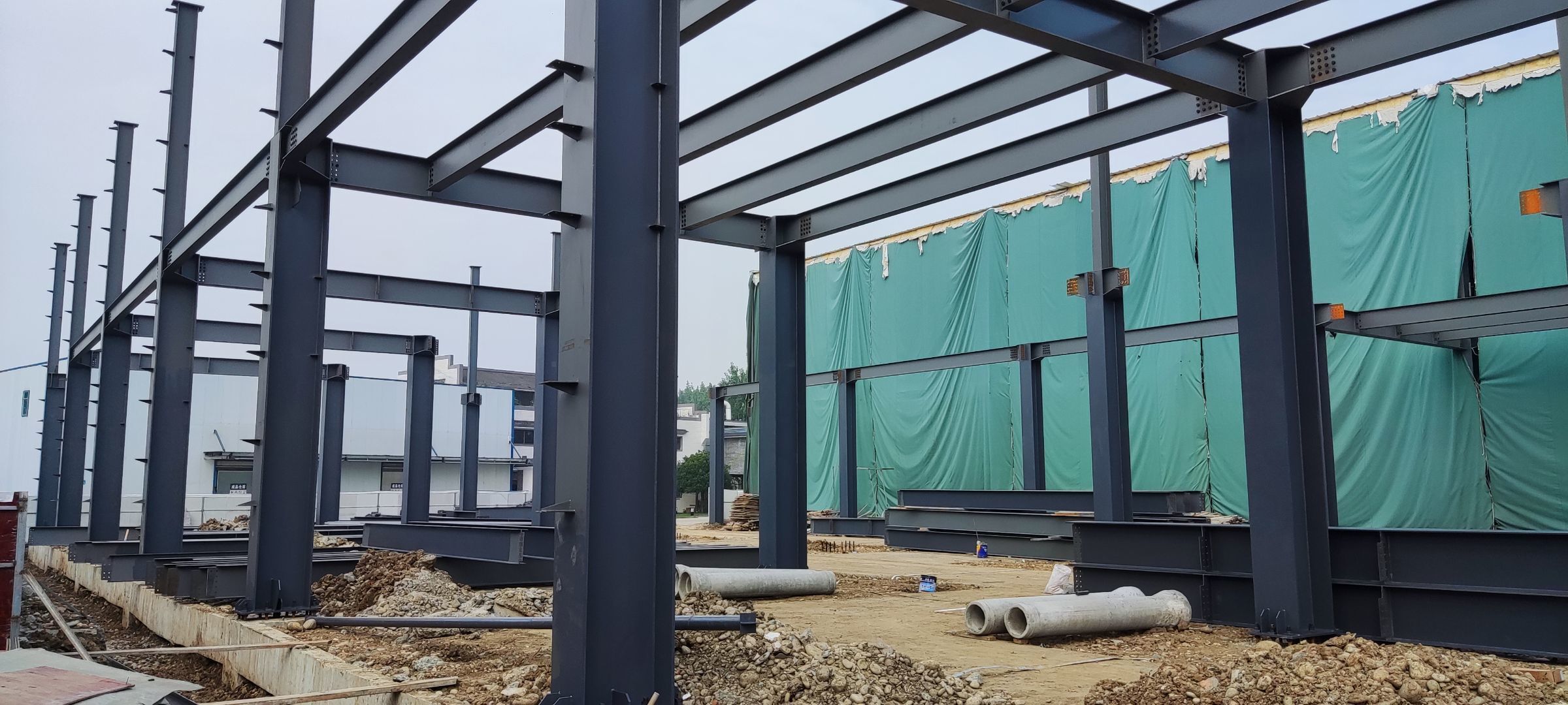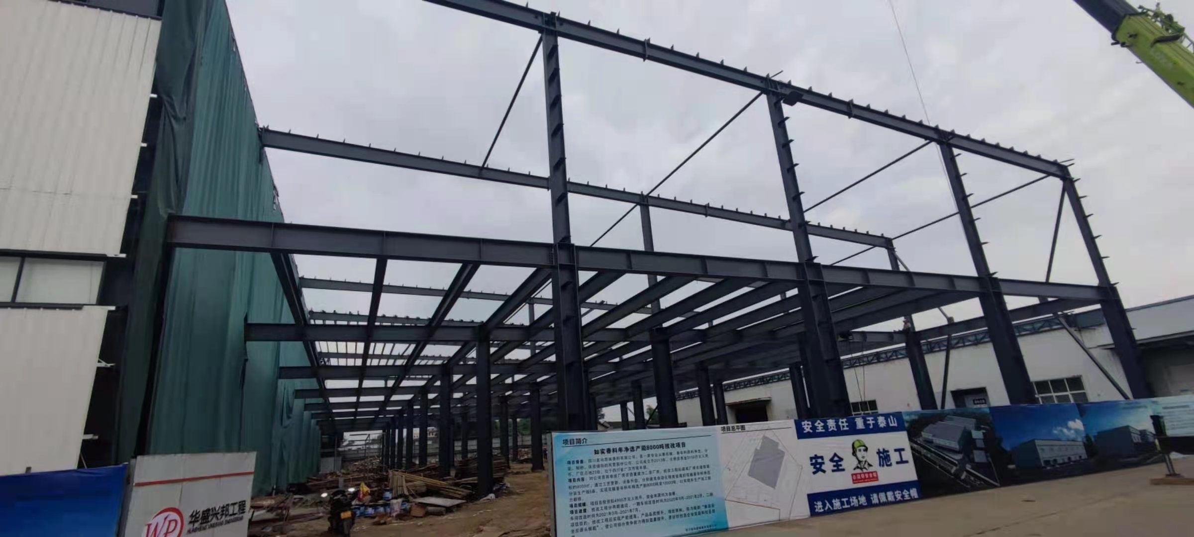 1、鋼結(jié)構(gòu)主體框架完成90%;2、檁條安裝完成10%