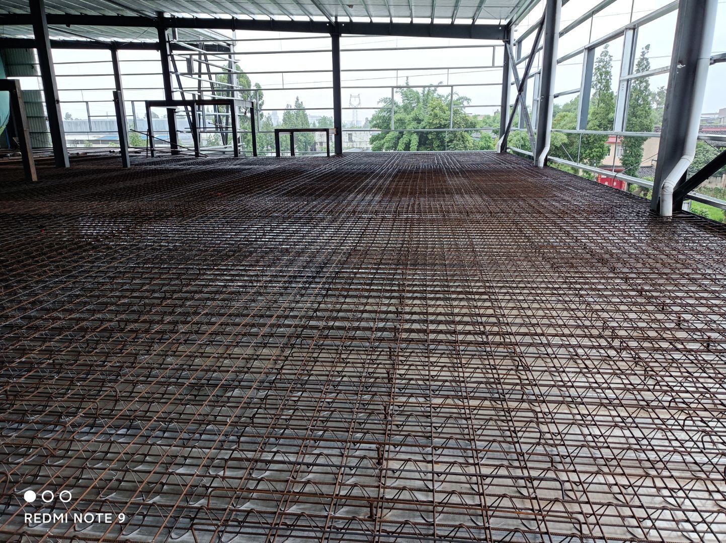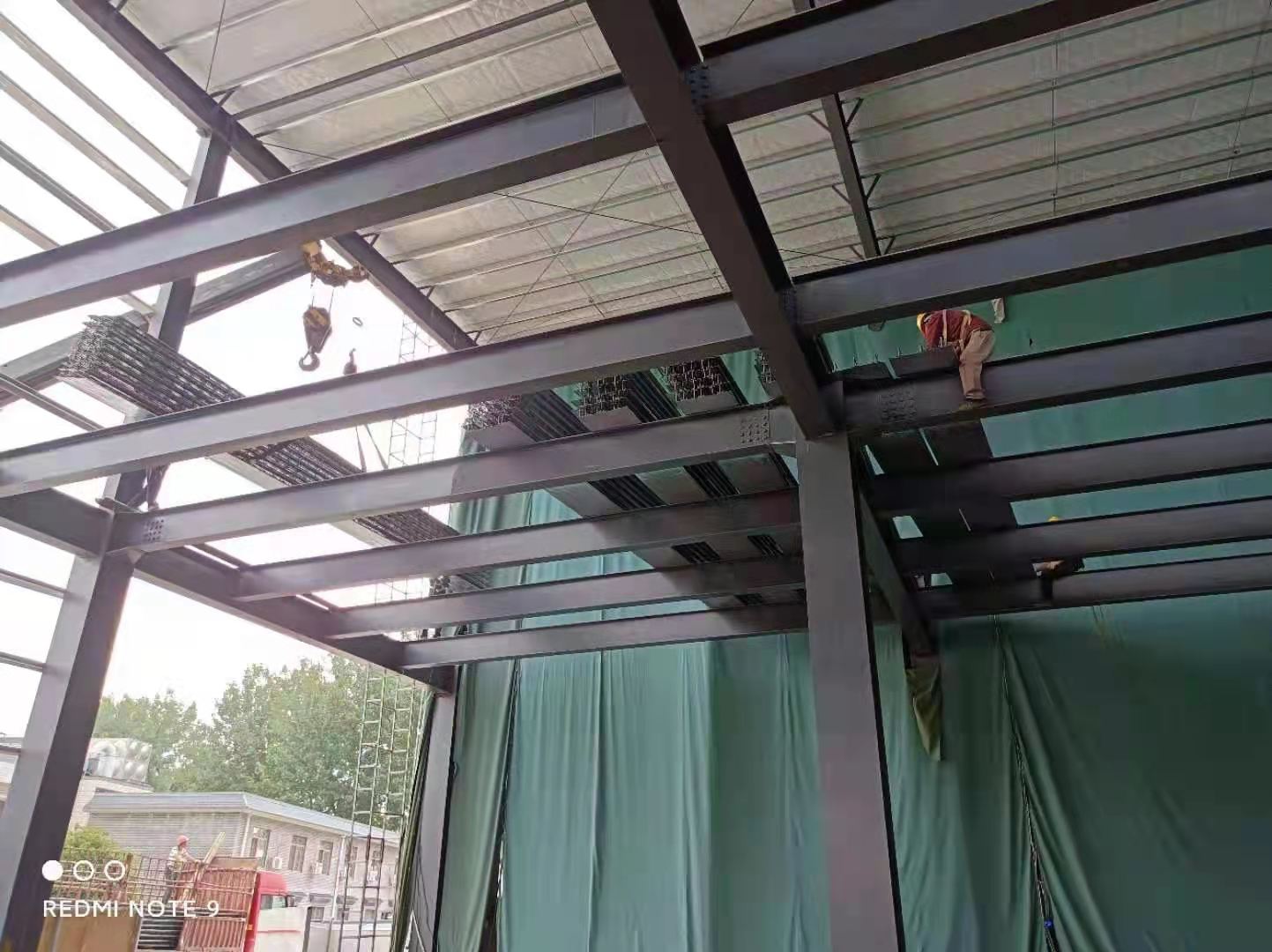 鋼構(gòu)室外雨棚地板矩管完成95%