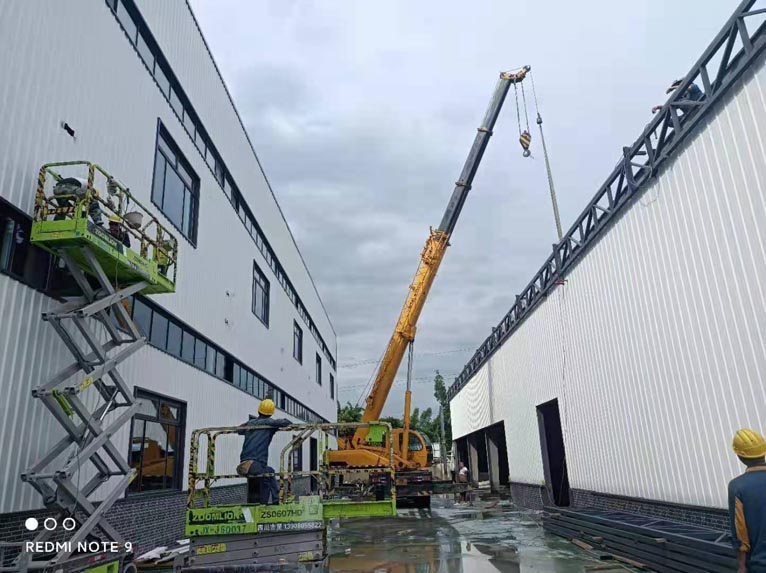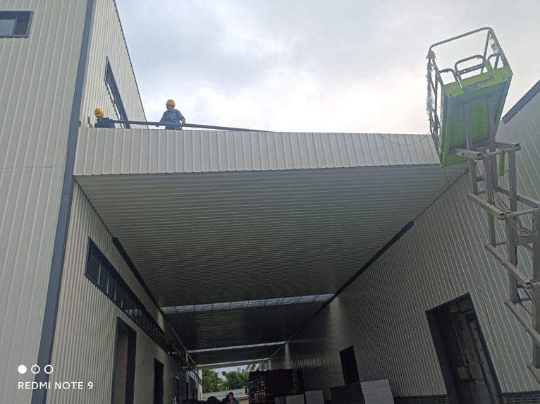 彩鋼板施工,兩個廠房連接部分頂板施工