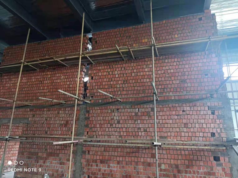 土建砌筑配電室外墻和打樓梯混凝土立柱。