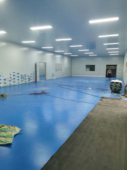 1,彩鋼墻板立板除預留設備外完成100% 2,彩鋼板吊頂除預留外,完成95% 3,三防板吊頂完成100% 4,水電安裝完成70% 5,彩鋼板收尾工作完成60% 6,聚氨酯超耐磨地坪漆,完成90%