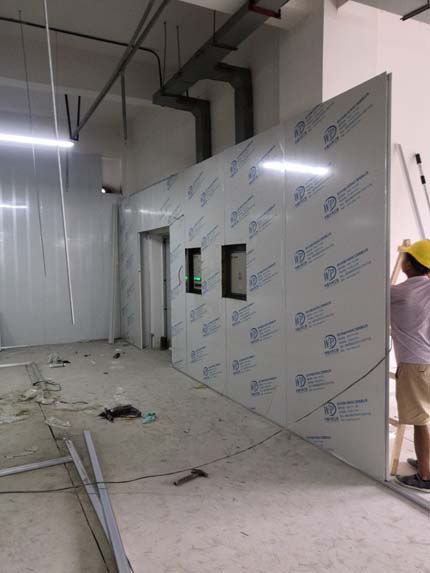 1、板縫,圓弧打膠完成90% 2、觀察窗開洞完成100% 3、電工插座開洞完成100%